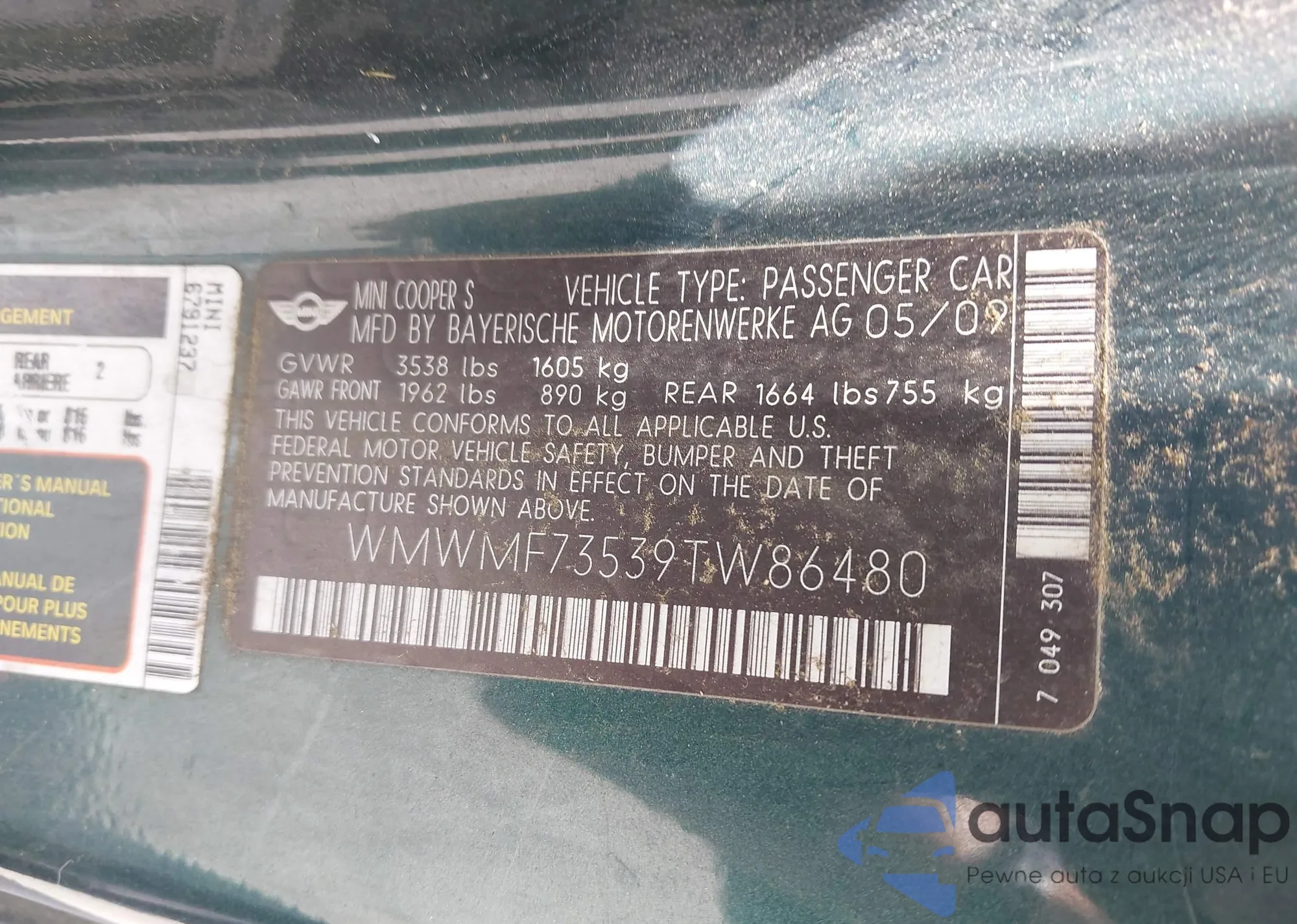 LOT: 43062520 VIN: WMWMF73539TW86480