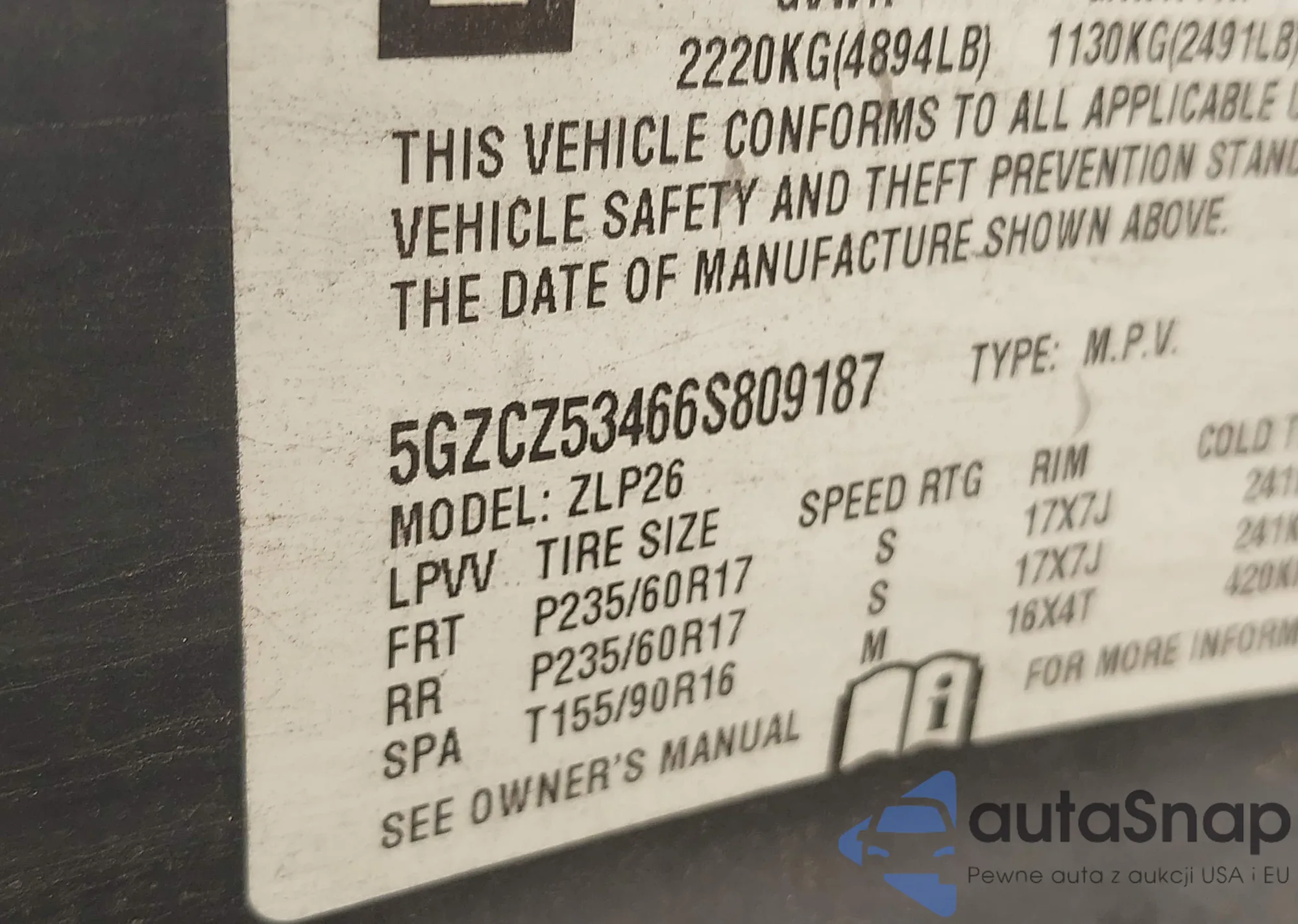 • VIN 5GZCZ53466S809187