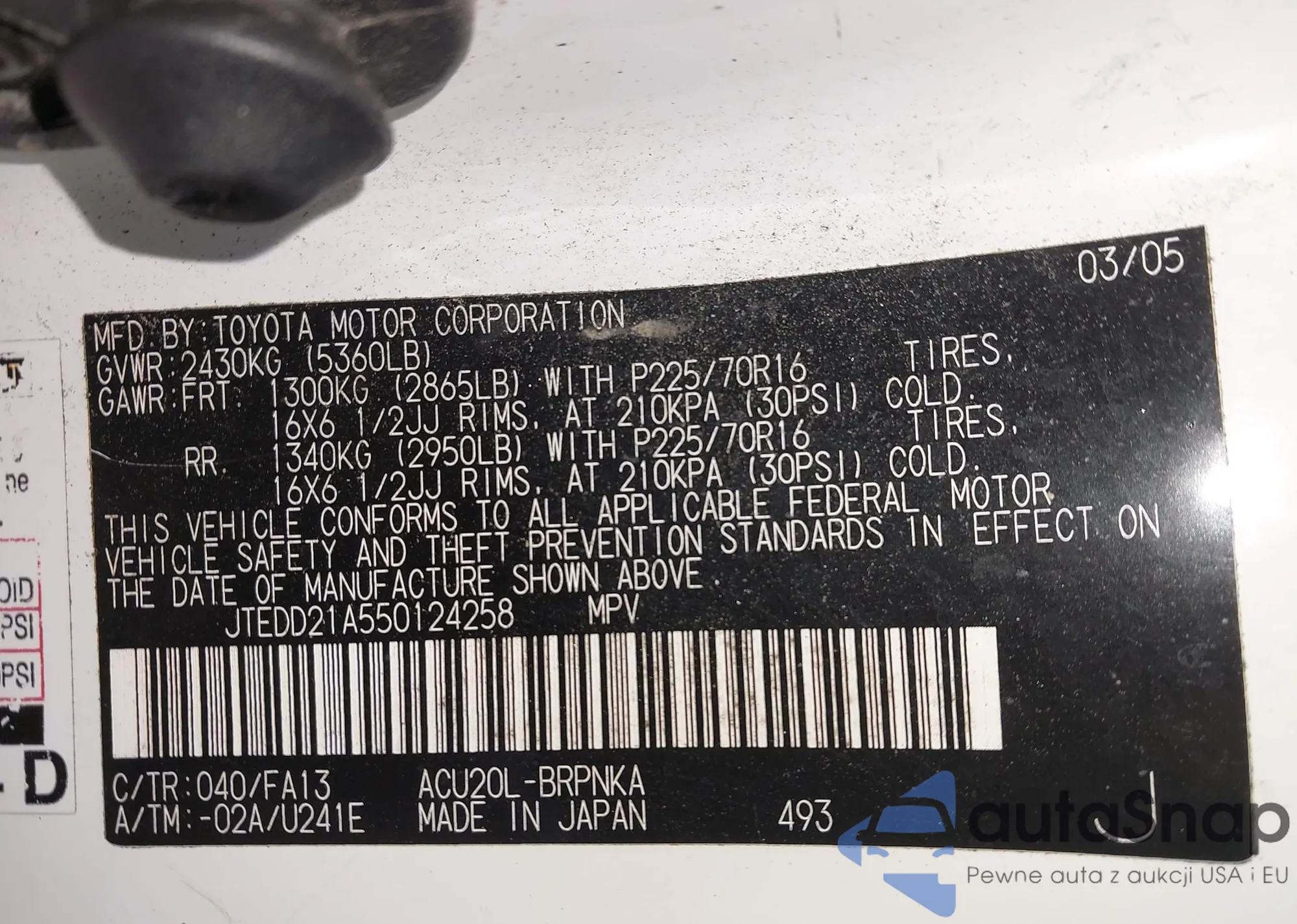 • VIN JTEDD21A550124258