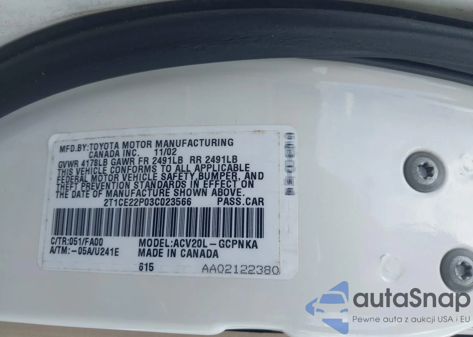 • VIN 2T1CE22P03C023566