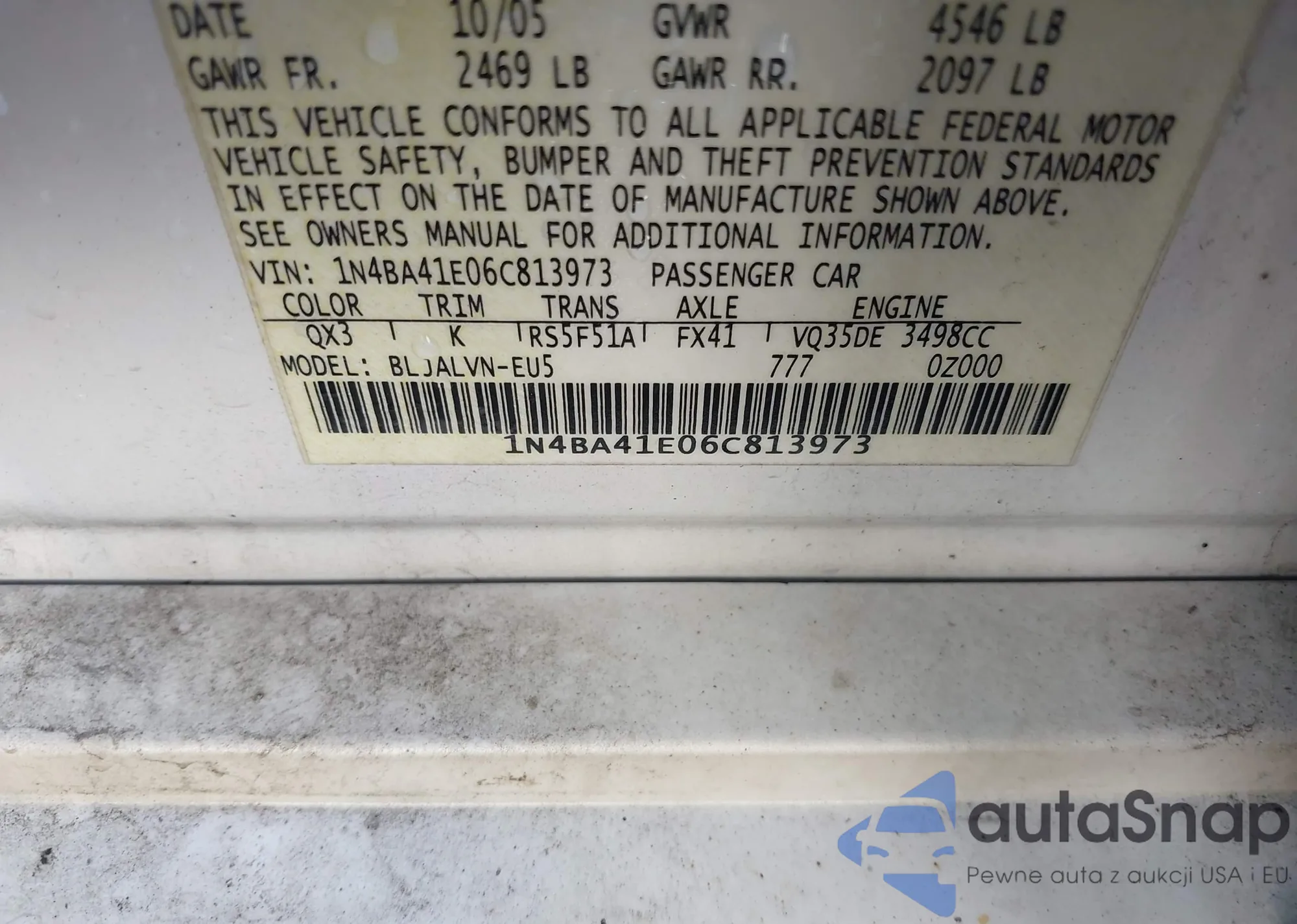 • VIN 1N4AA5AP6EC476095
