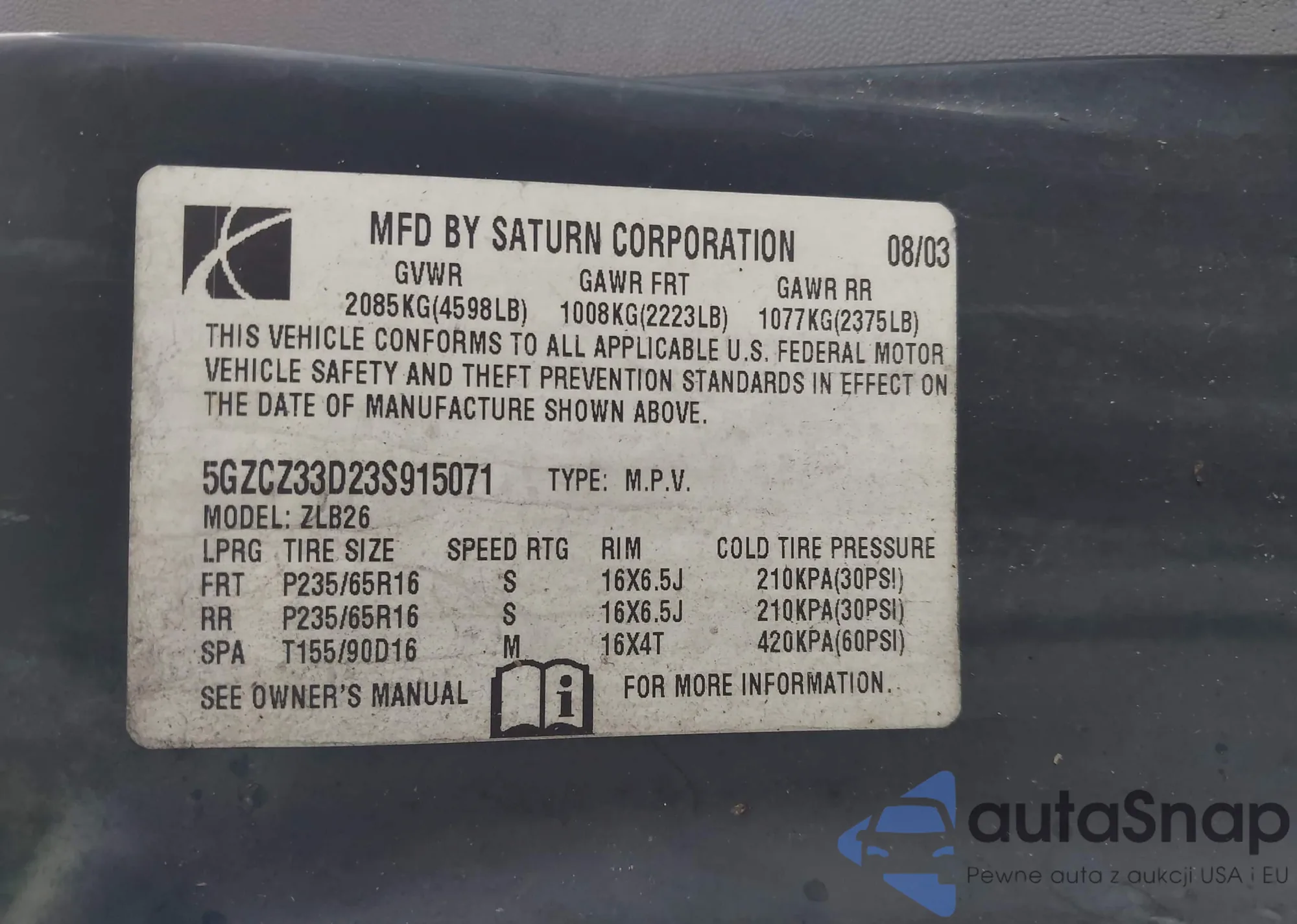 • VIN 5GZCZ33D23S915071