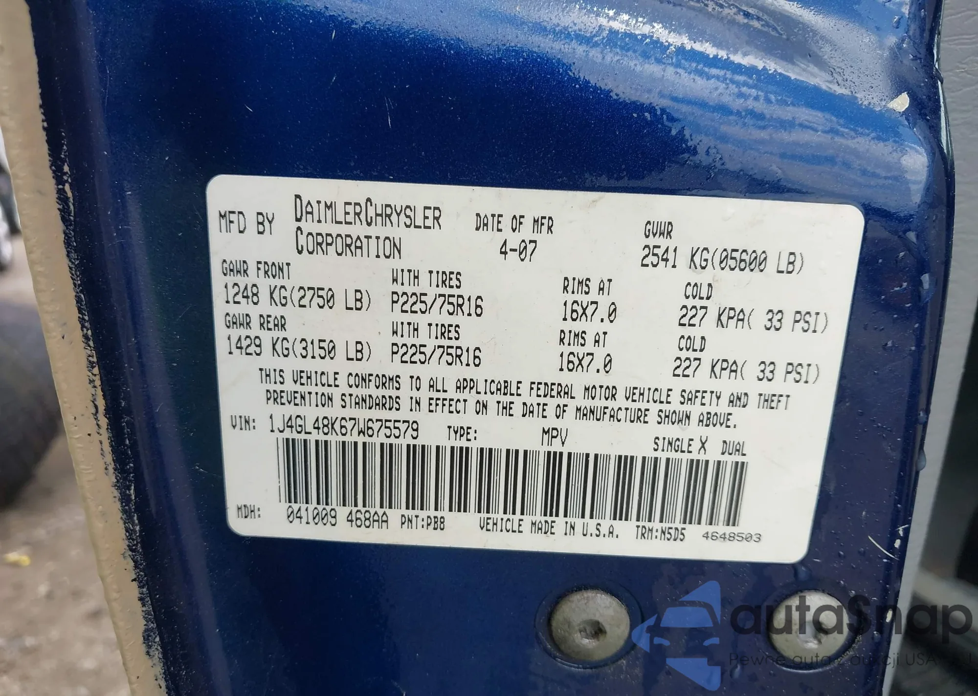 LOT: 42962482 VIN: 1D7HL38X83S115828