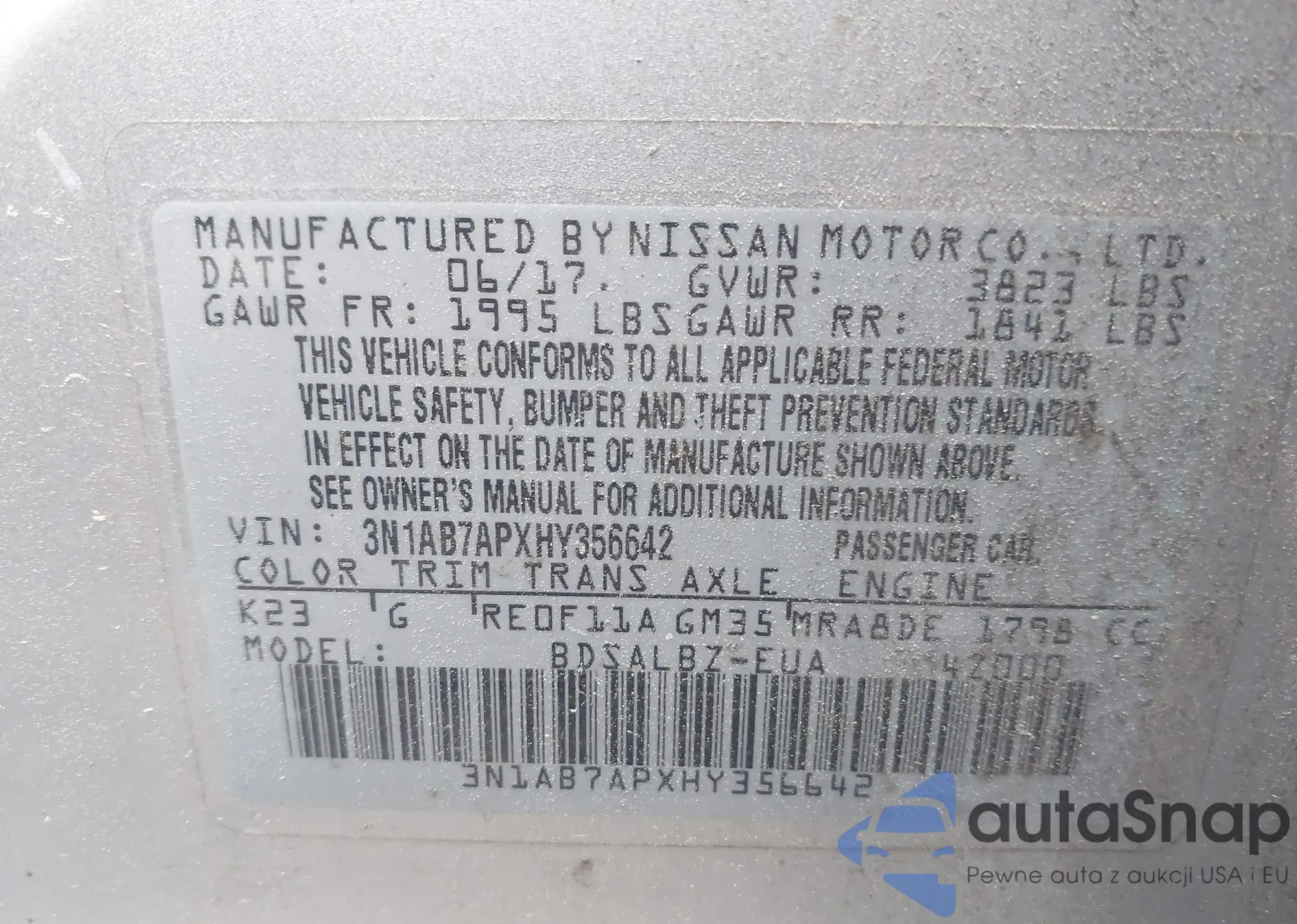 • VIN 3N1AB61EX8L647776