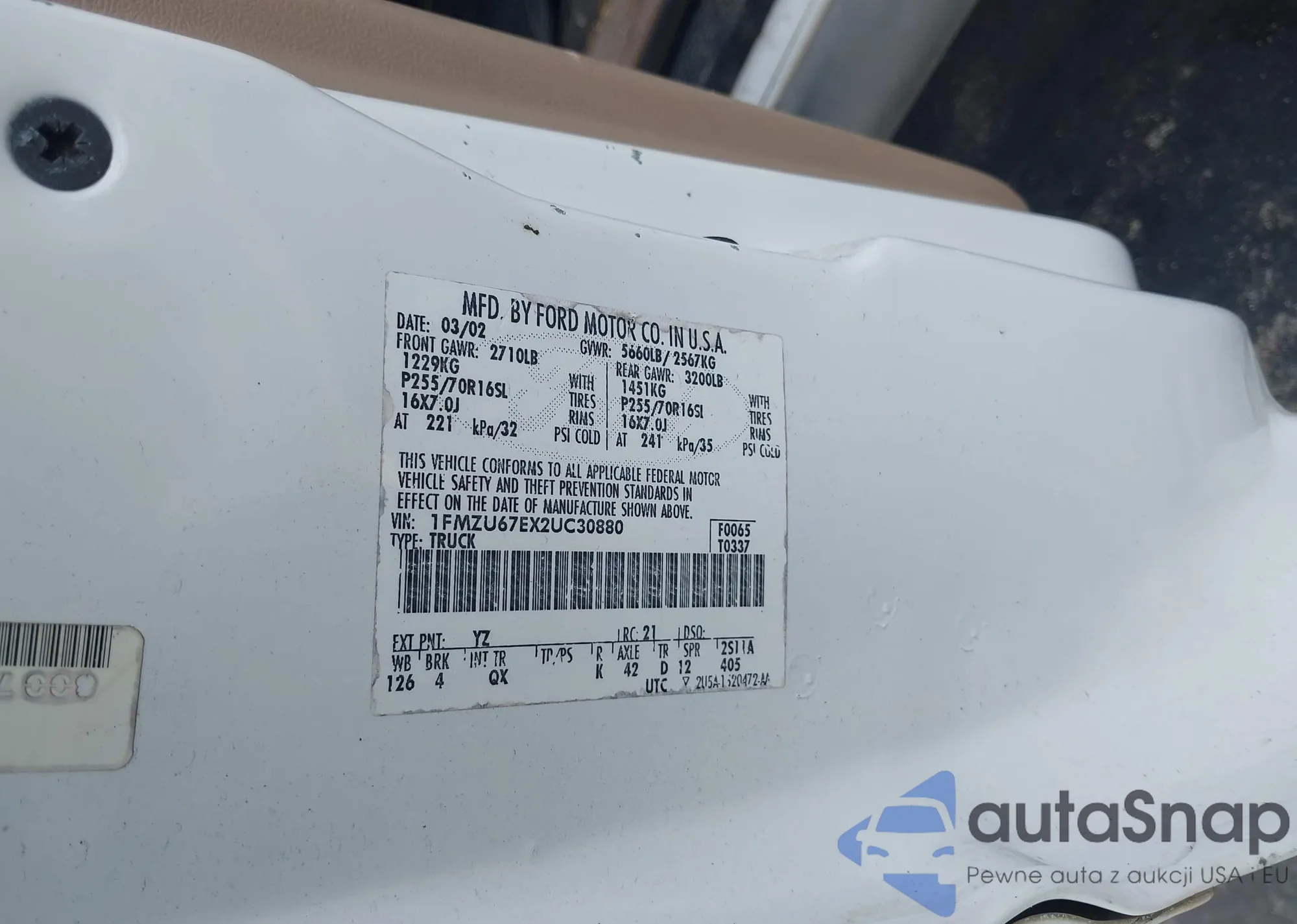 • VIN 1FMZU67EX2UC30880