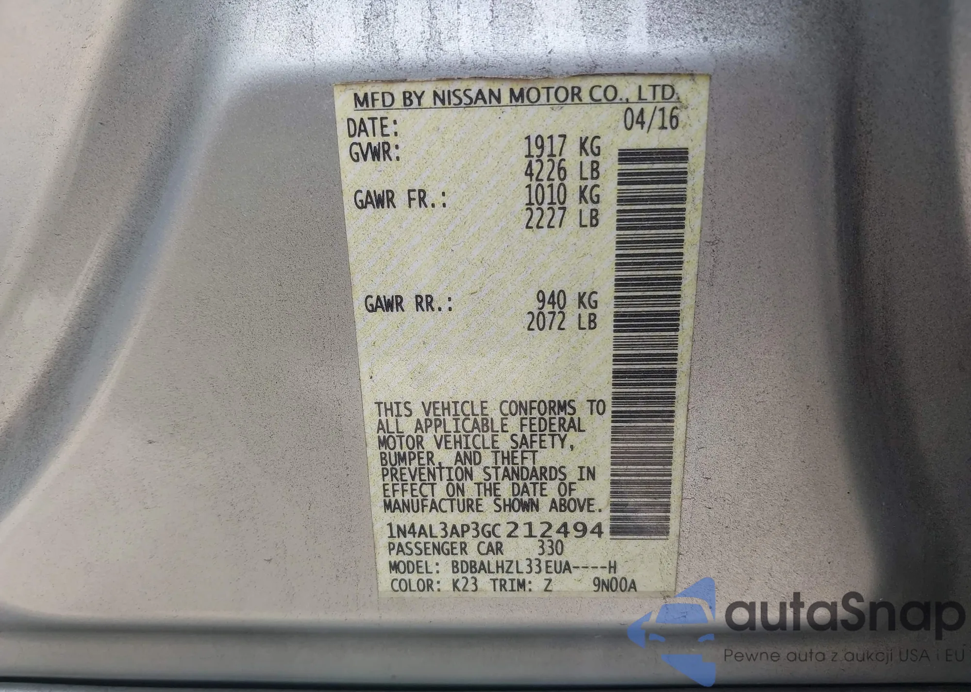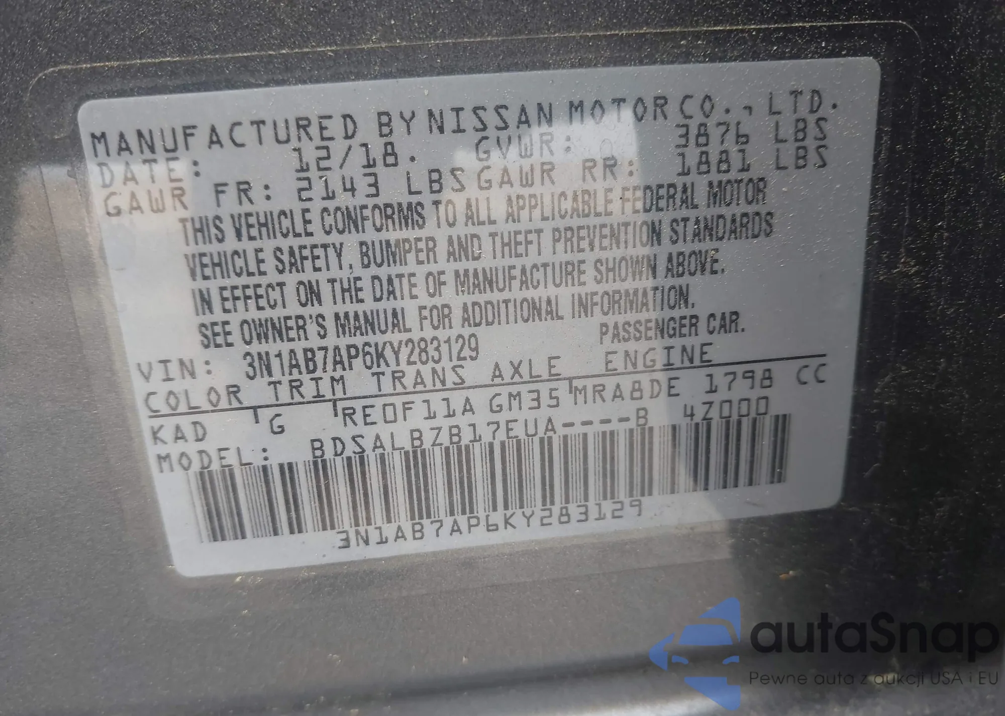 • VIN 3N1AB7AP6KY283129