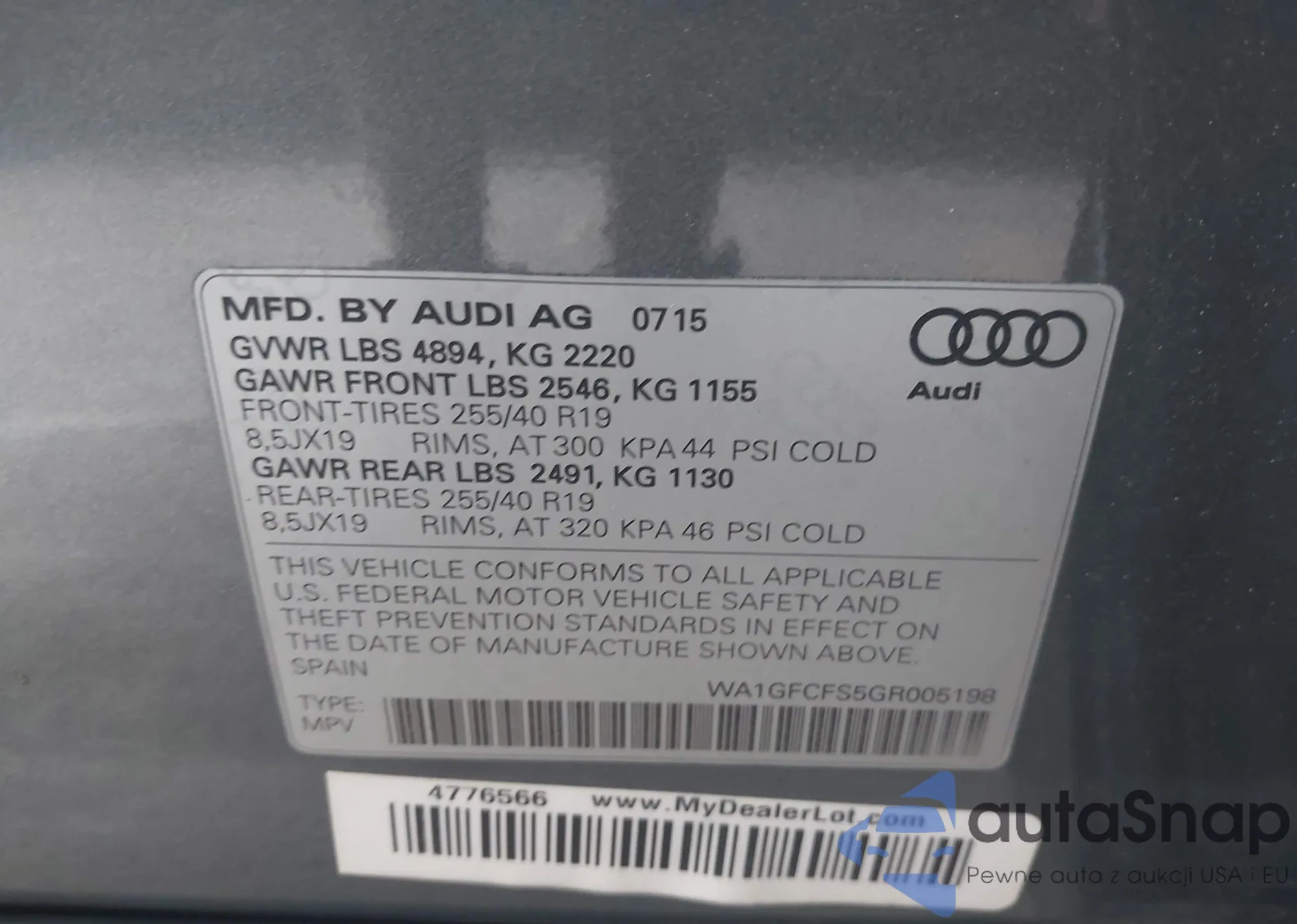 LOT: 42232443 VIN: WA1GFCFS5GR005198