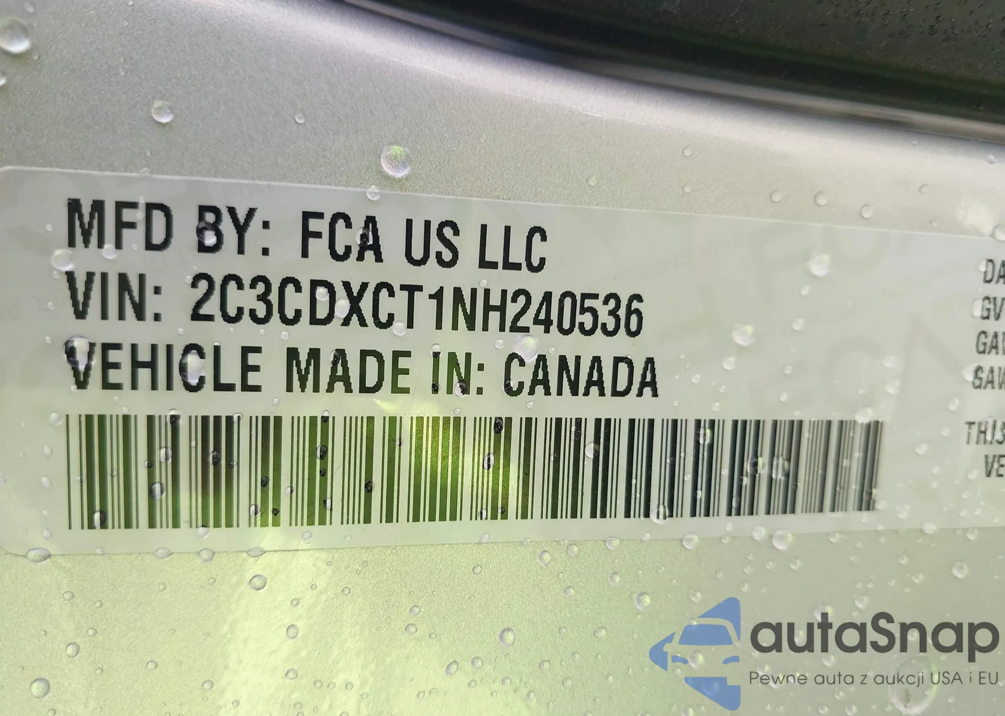 • VIN 2C3CDXCT1NH240536