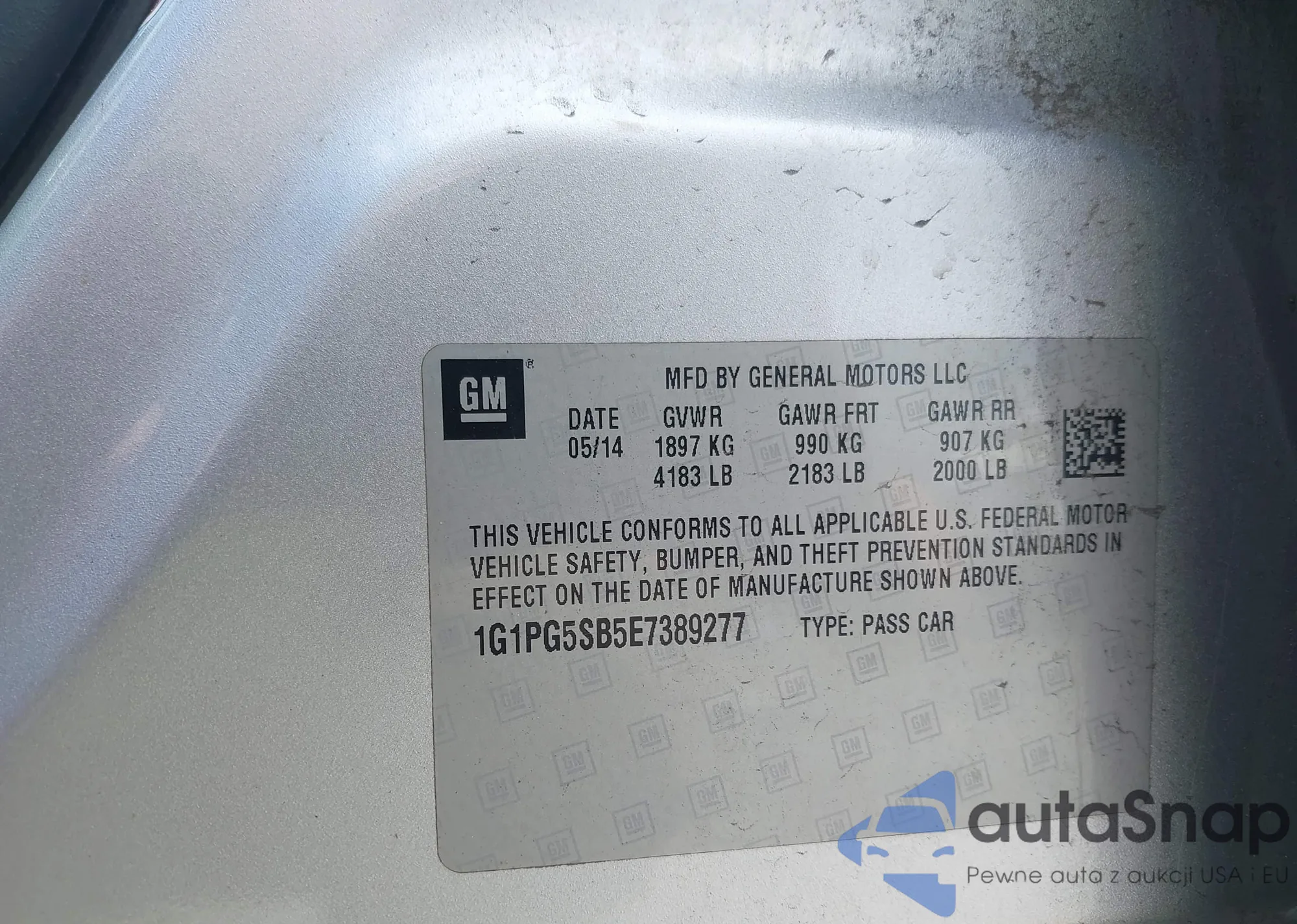 LOT: 42534600 VIN: 1G1PG5SB5E7389277