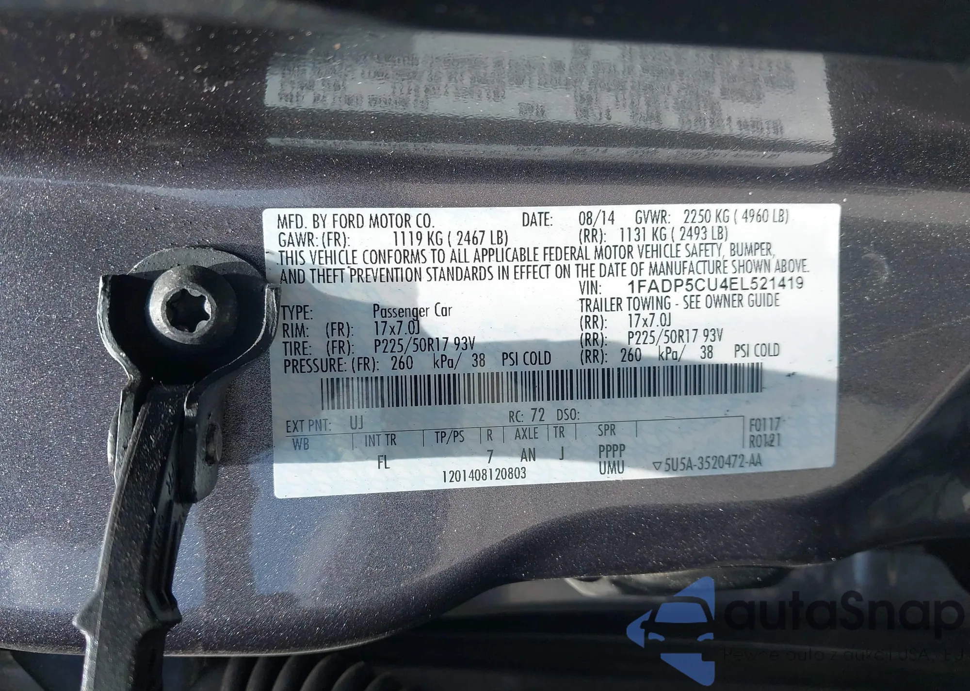 LOT: 42702430 VIN: 1FADP5CU4EL521419
