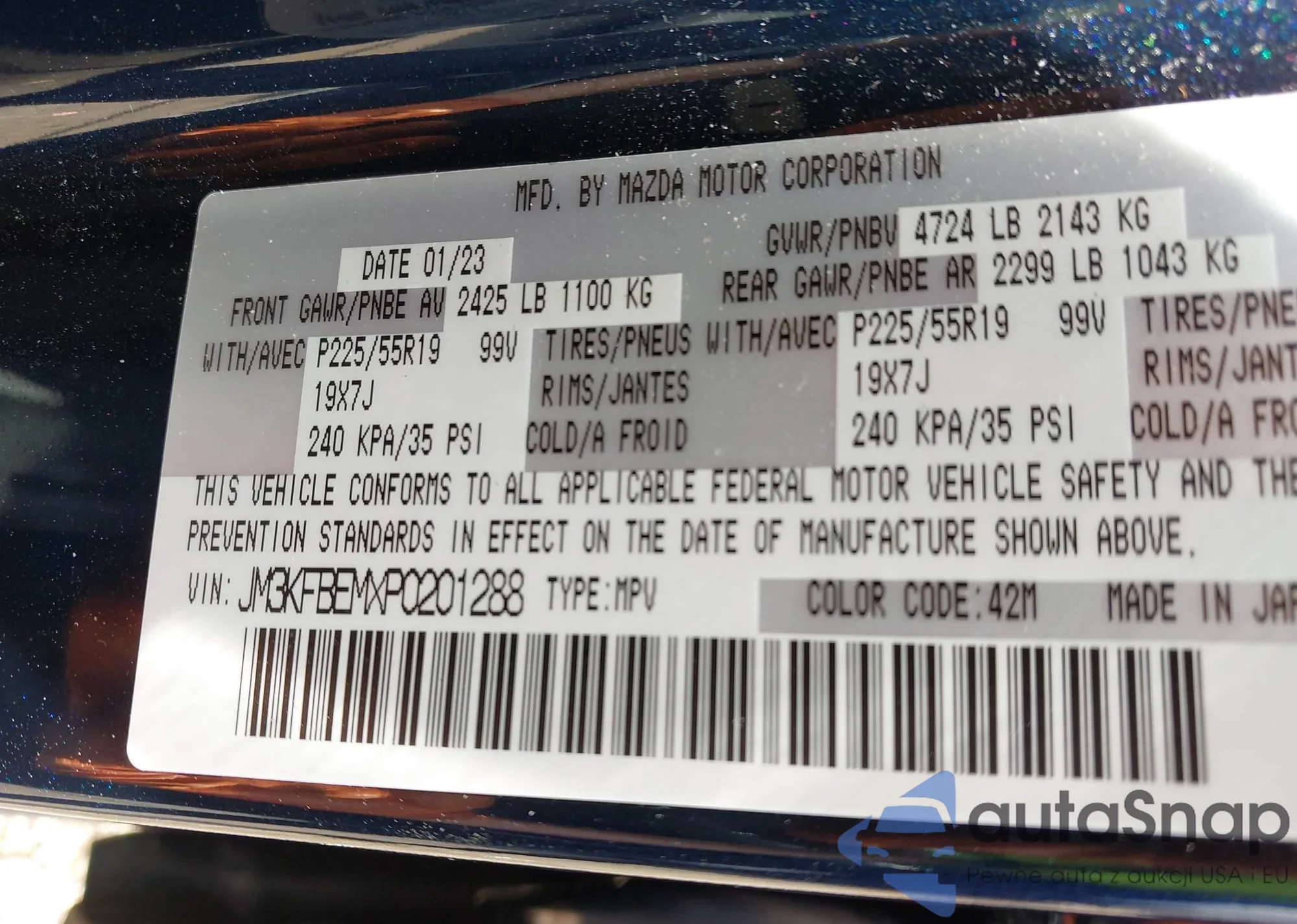 LOT: 42724428 VIN: JM3KFBEMXP0201288