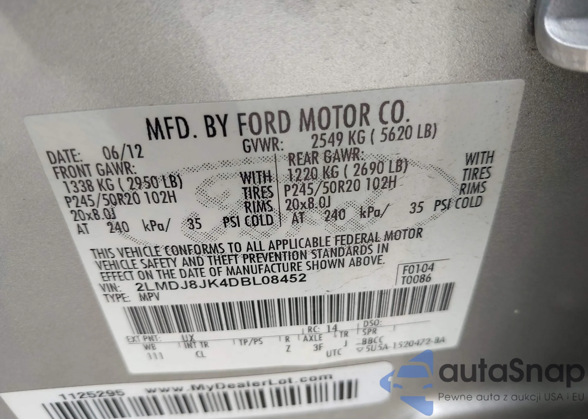 • VIN 2LMDJ8JK4DBL08452