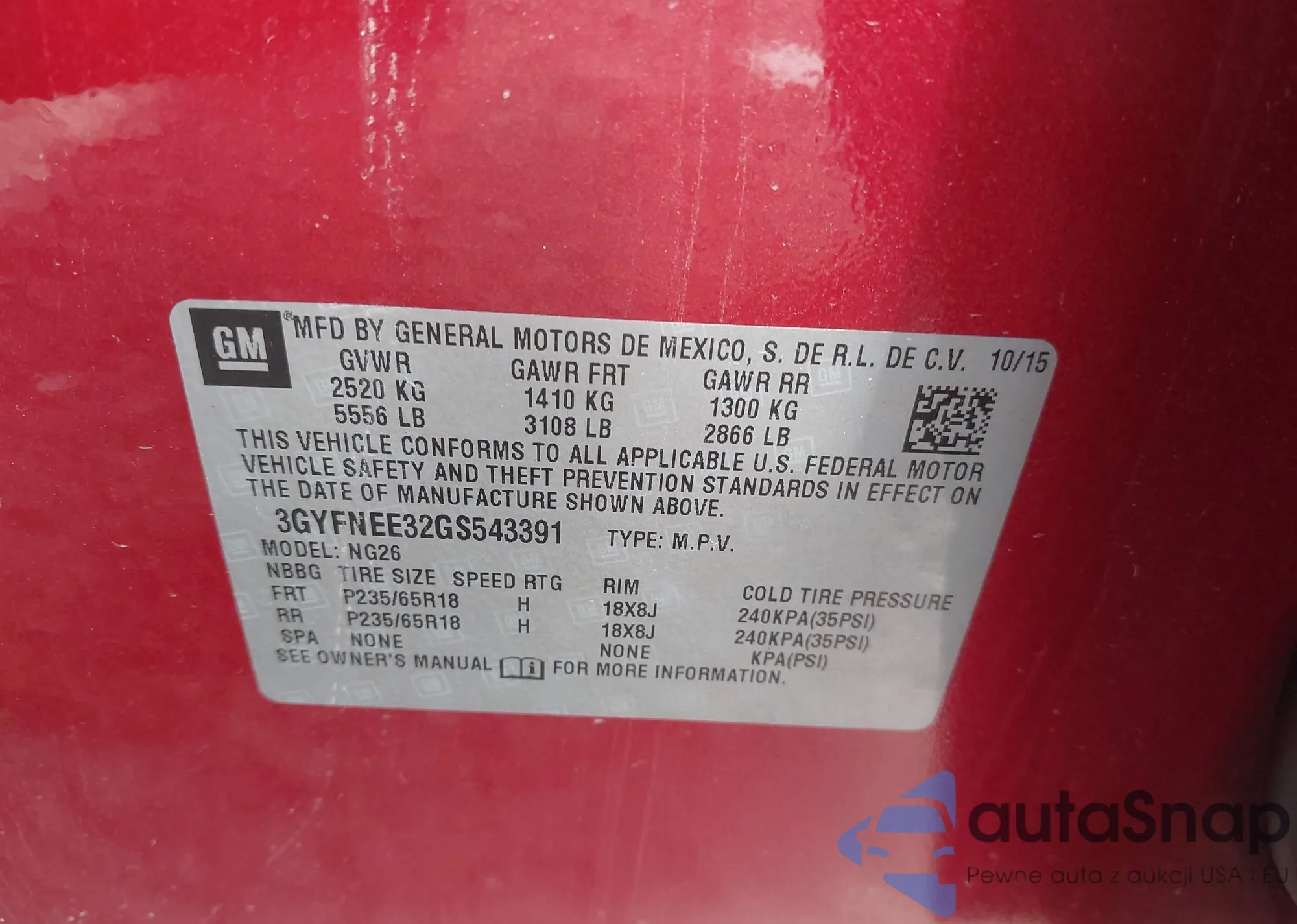 • VIN 3GYFNEE32GS543391