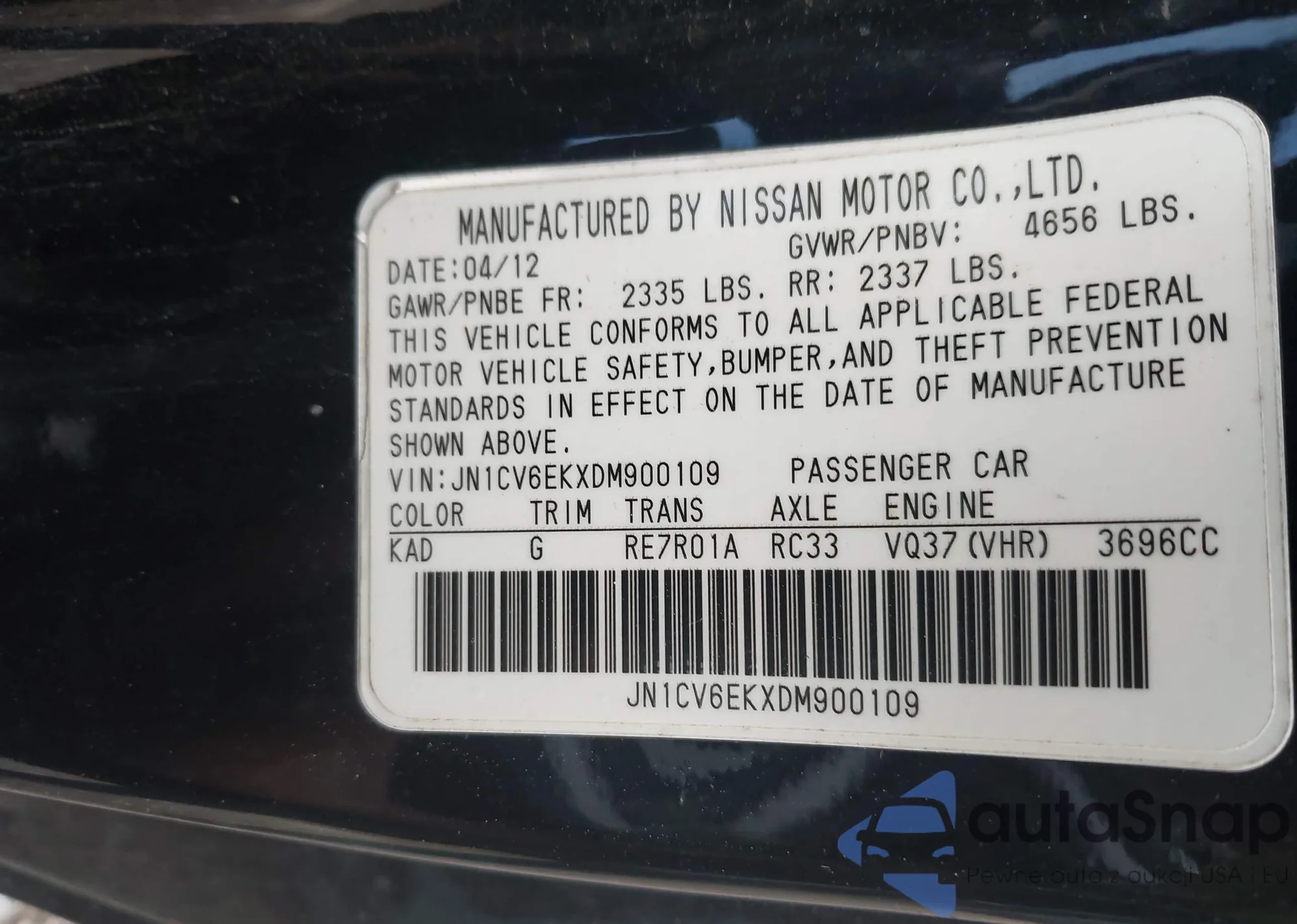 LOT: 42752219 VIN: JN1CV6EKXDM900109