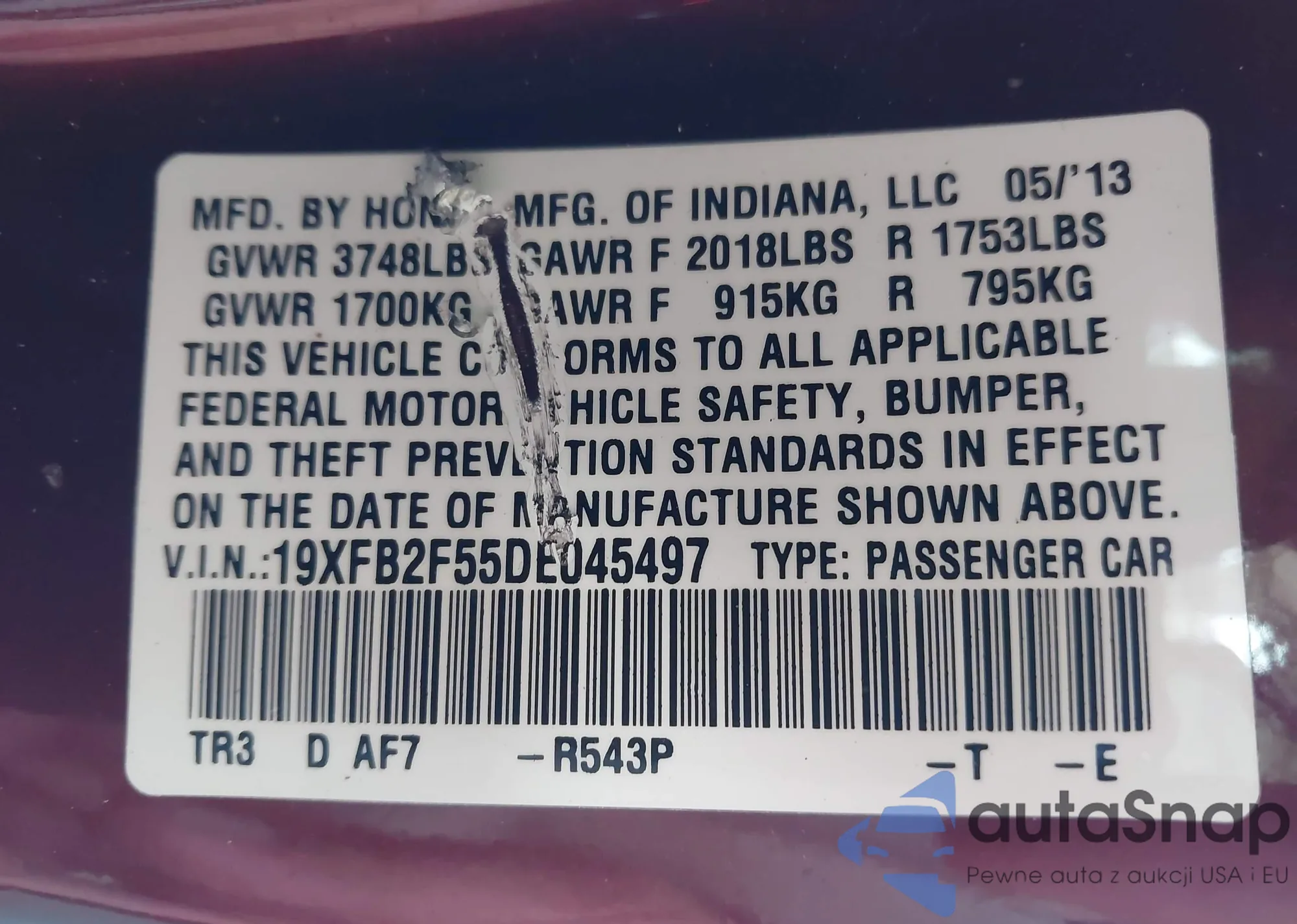 • Damage: Right side