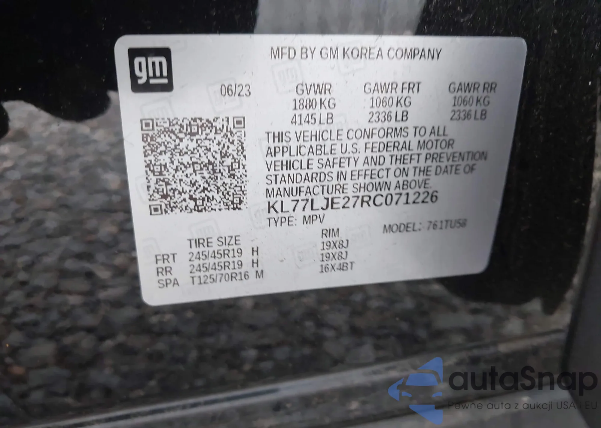 LOT: 42918396 VIN: KL77LJE27RC071226