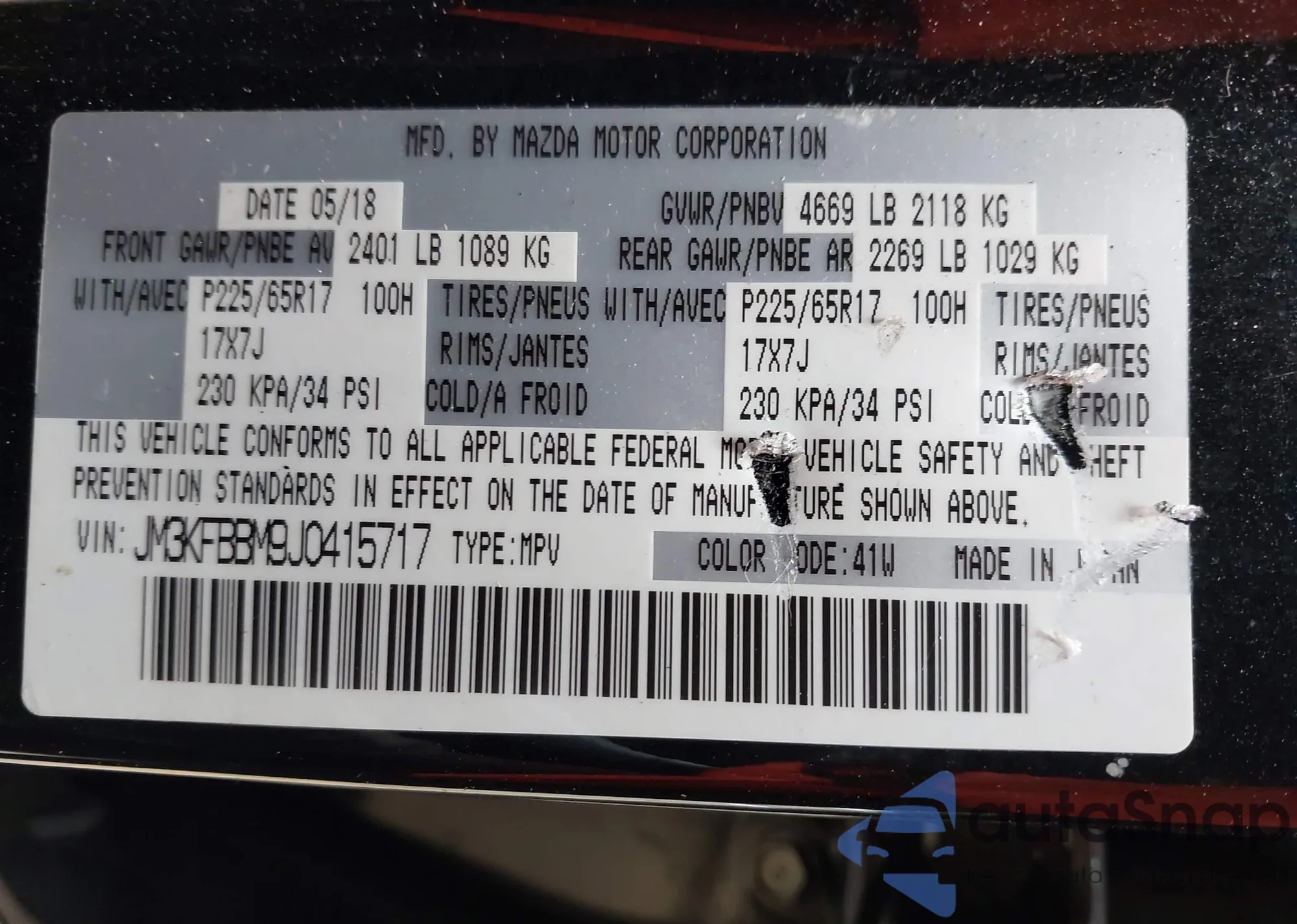 LOT: 42919877 VIN: JM3KFBBM9J0415717