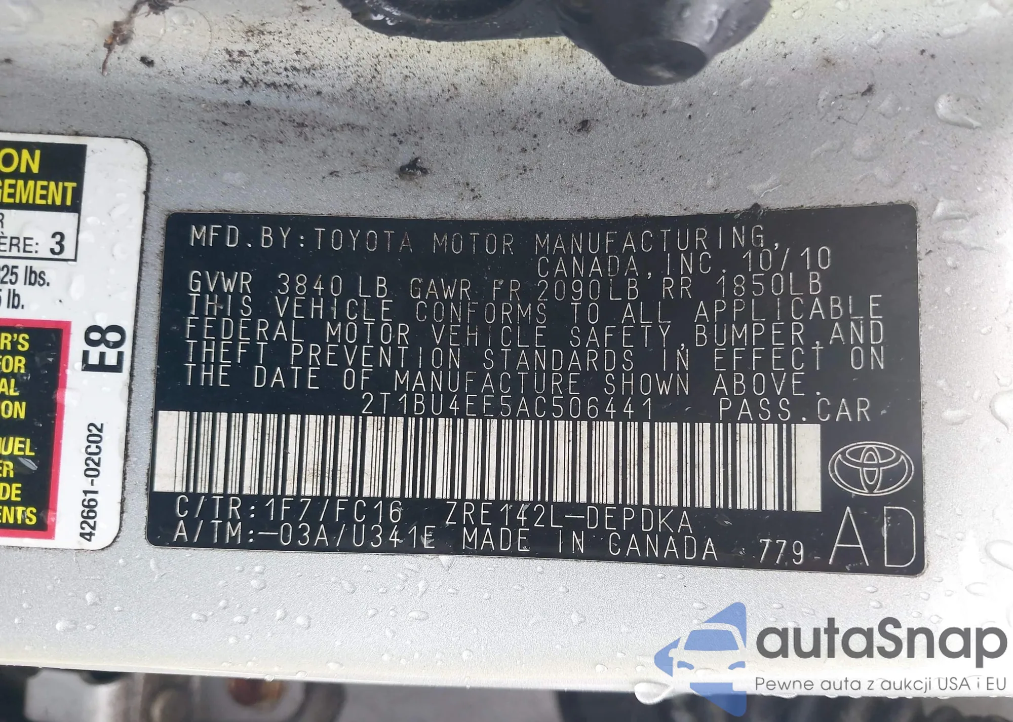 • VIN 2T1BU4EE5AC506441