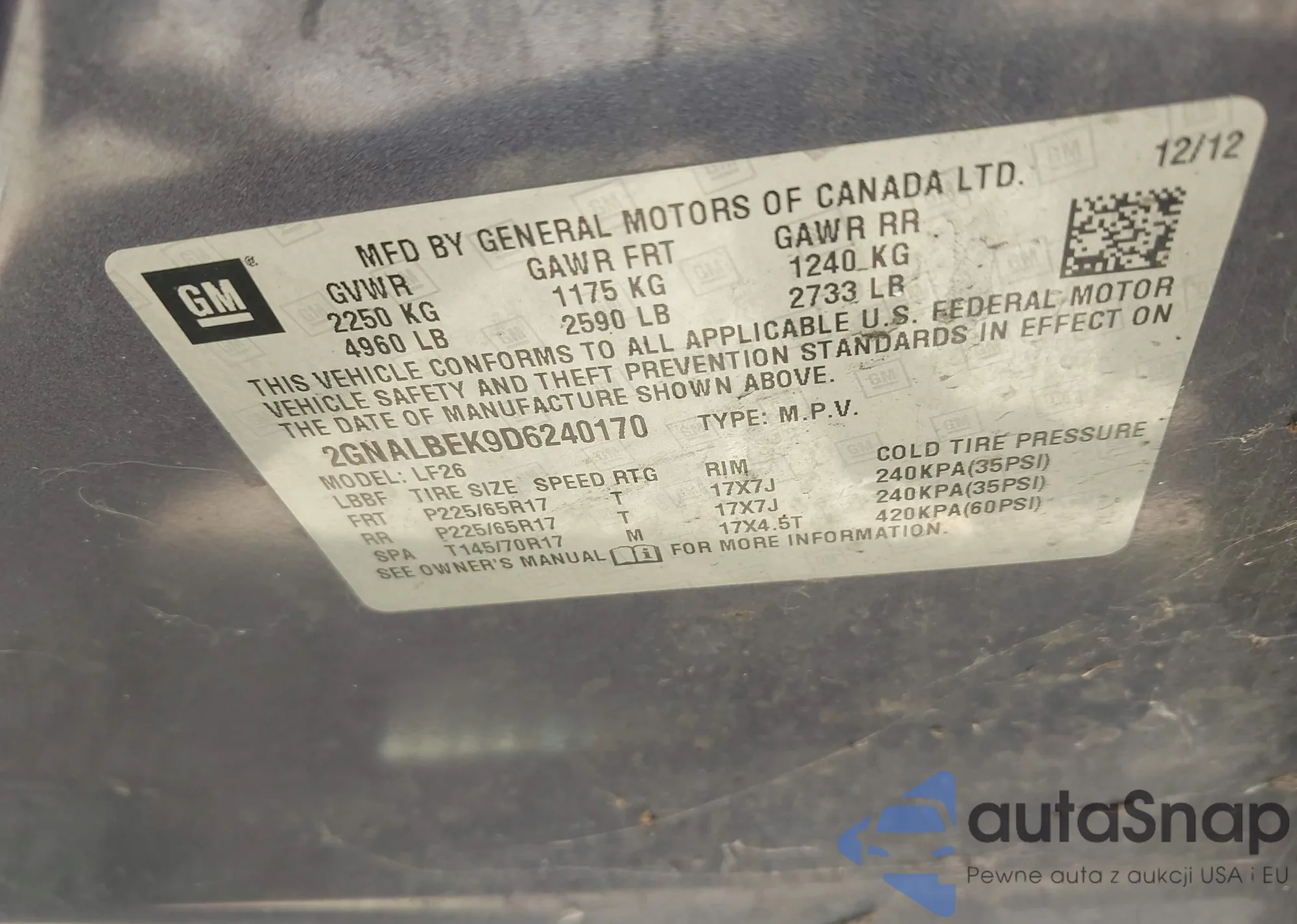 • VIN 2GNALBEK9D6240170