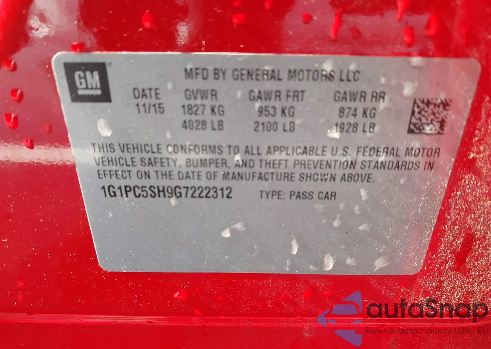 LOT: 42981955 VIN: 1G1PC5SH9G7222312