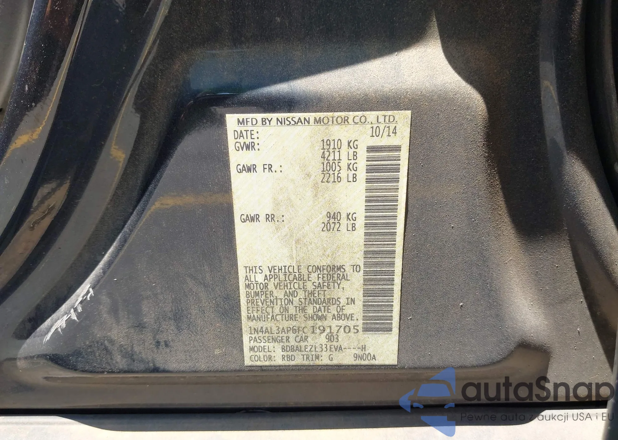 • VIN 1N4AL3AP6FC191705
