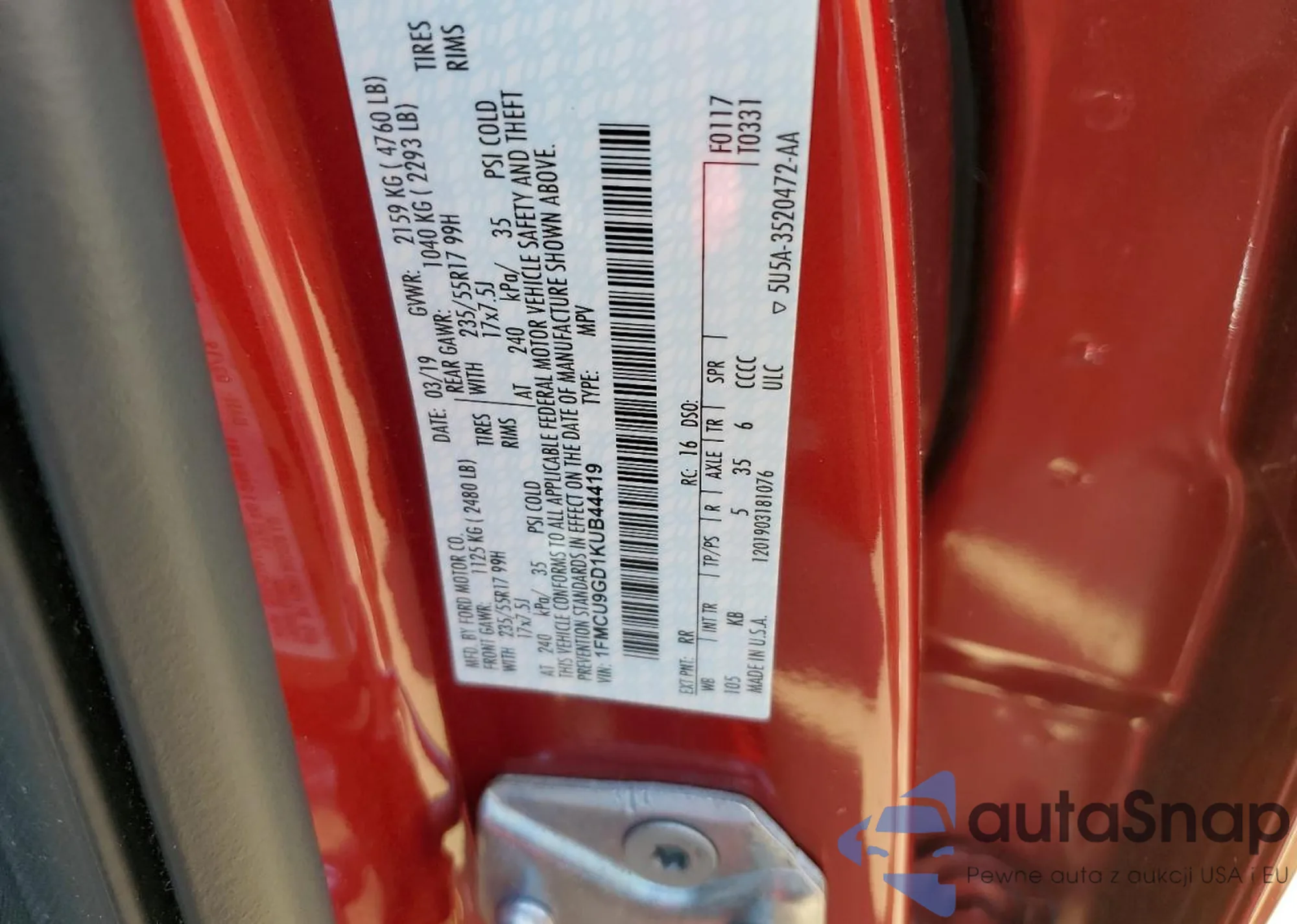 LOT: 58093335 VIN: 1FMFU18L31LA05157
