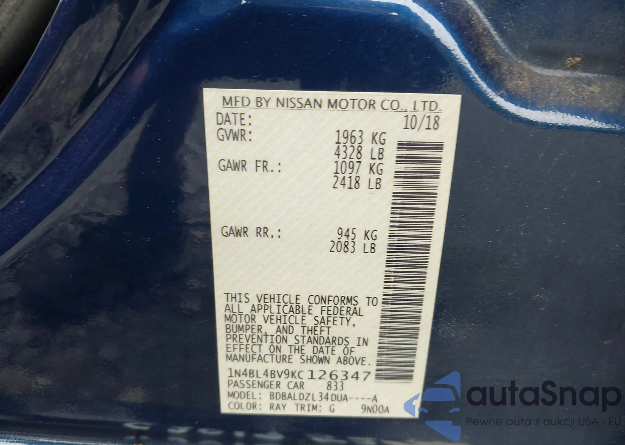 • VIN 1N4BL4BV7LC275664