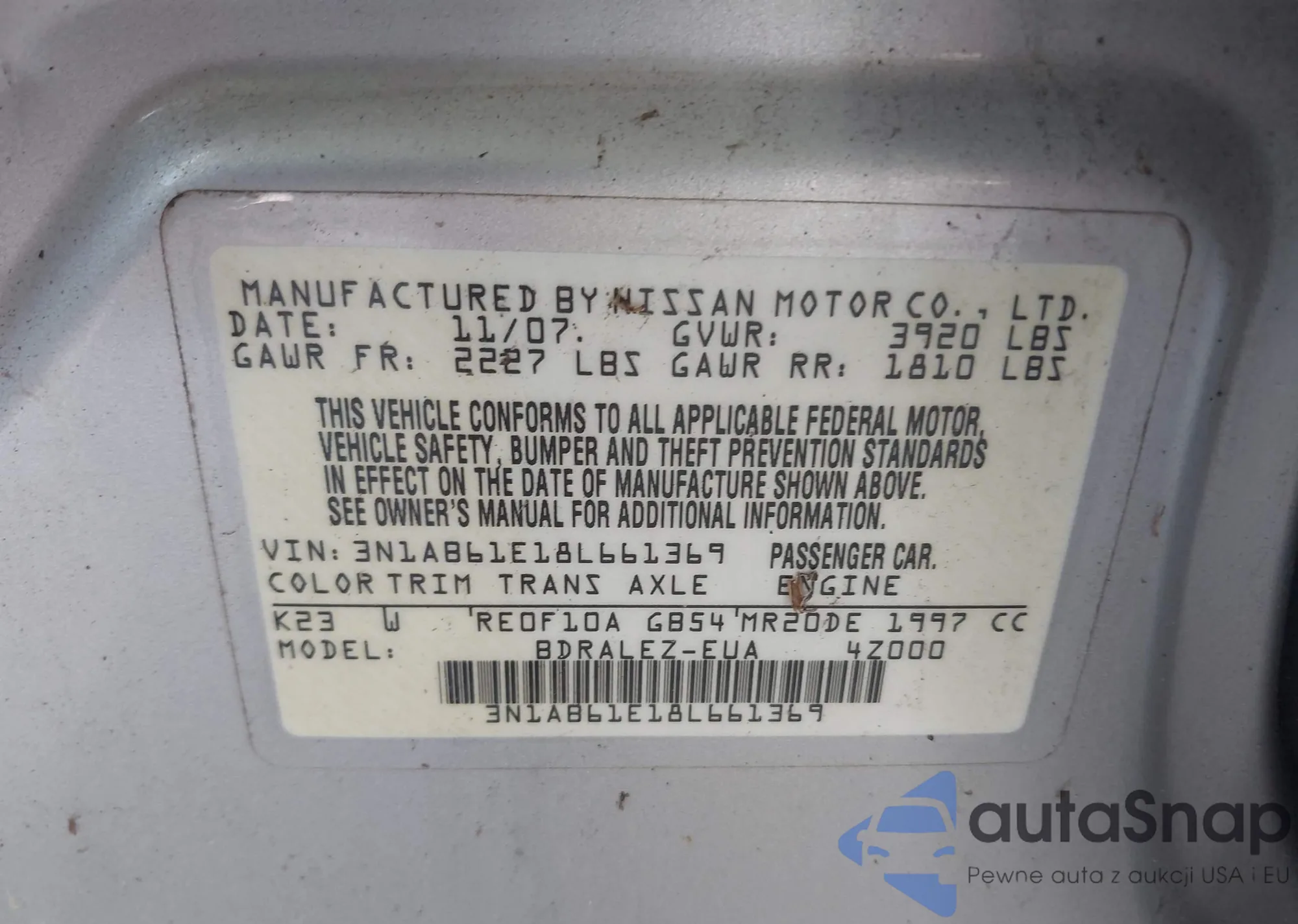• VIN 3N1AB61E18L661369