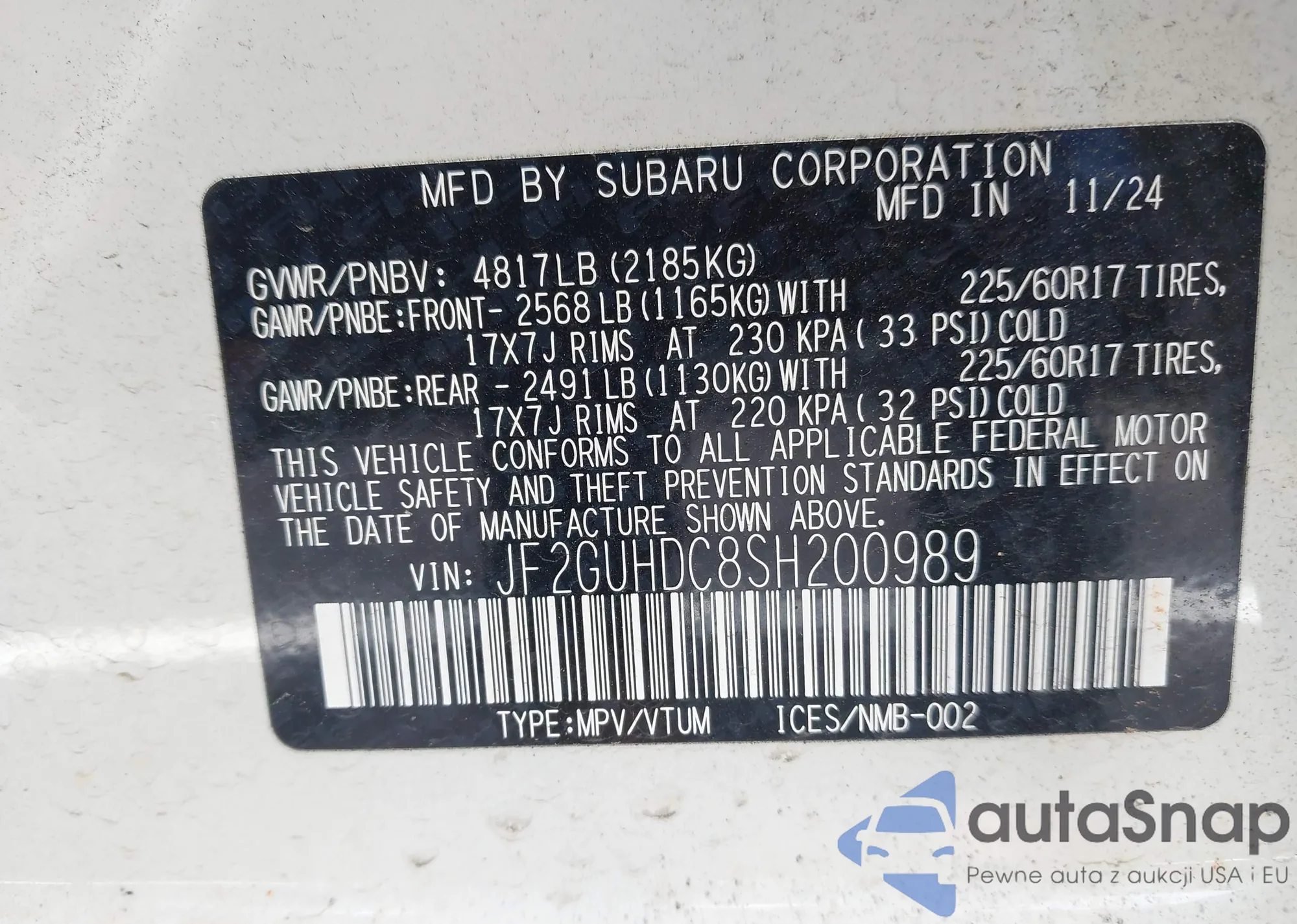 LOT: 42959490 VIN: JF2GUHDC8SH200989