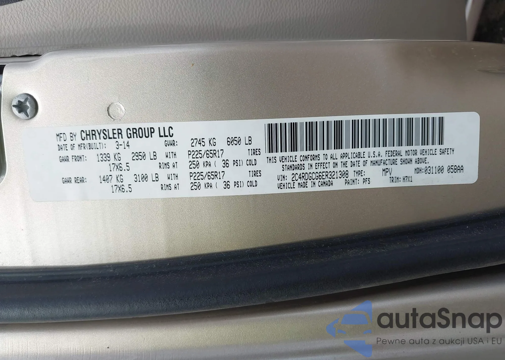 • VIN 2C4RDGCG6ER321308