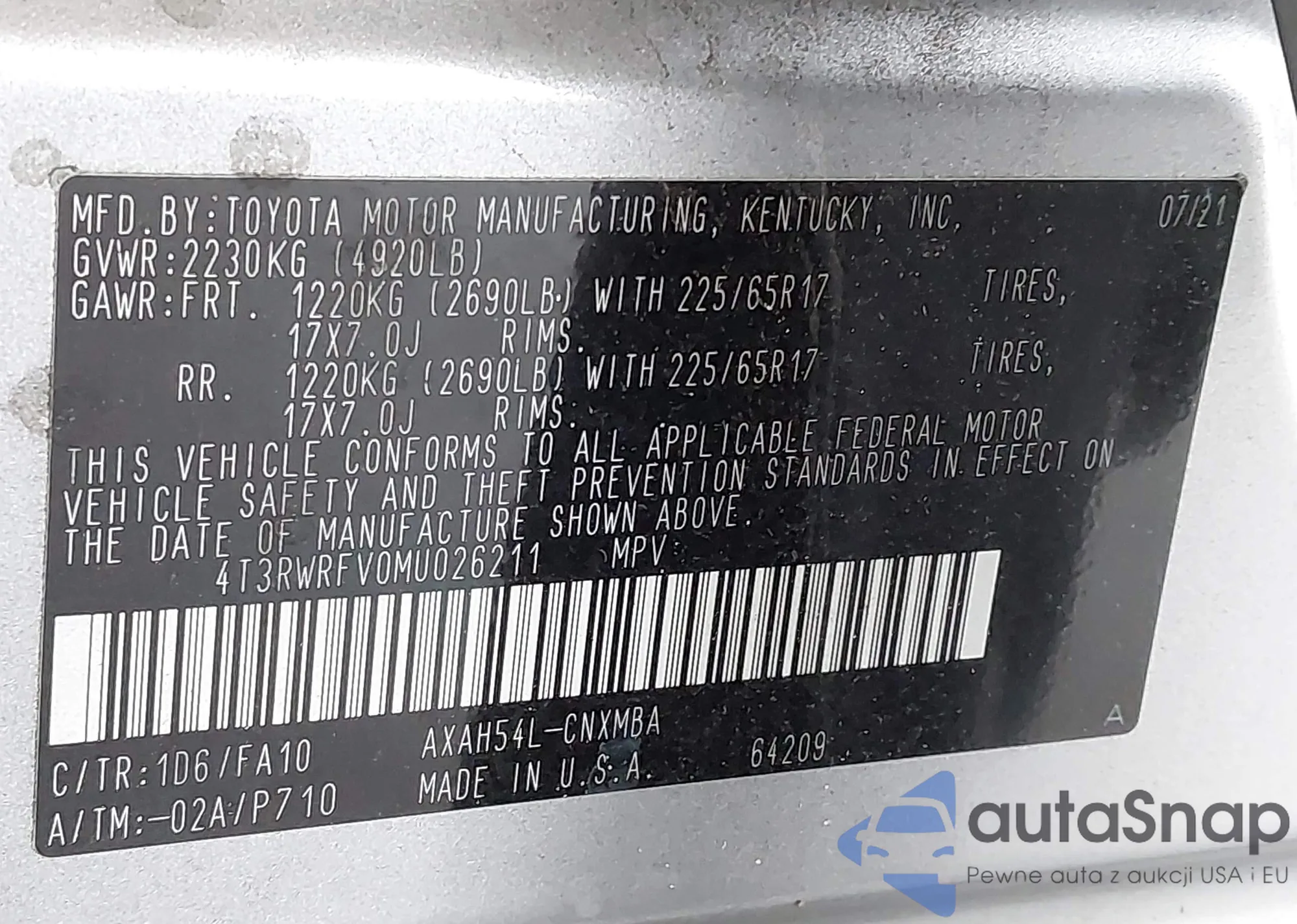 LOT: 42659150 VIN: 4T1K61AK2MU616645