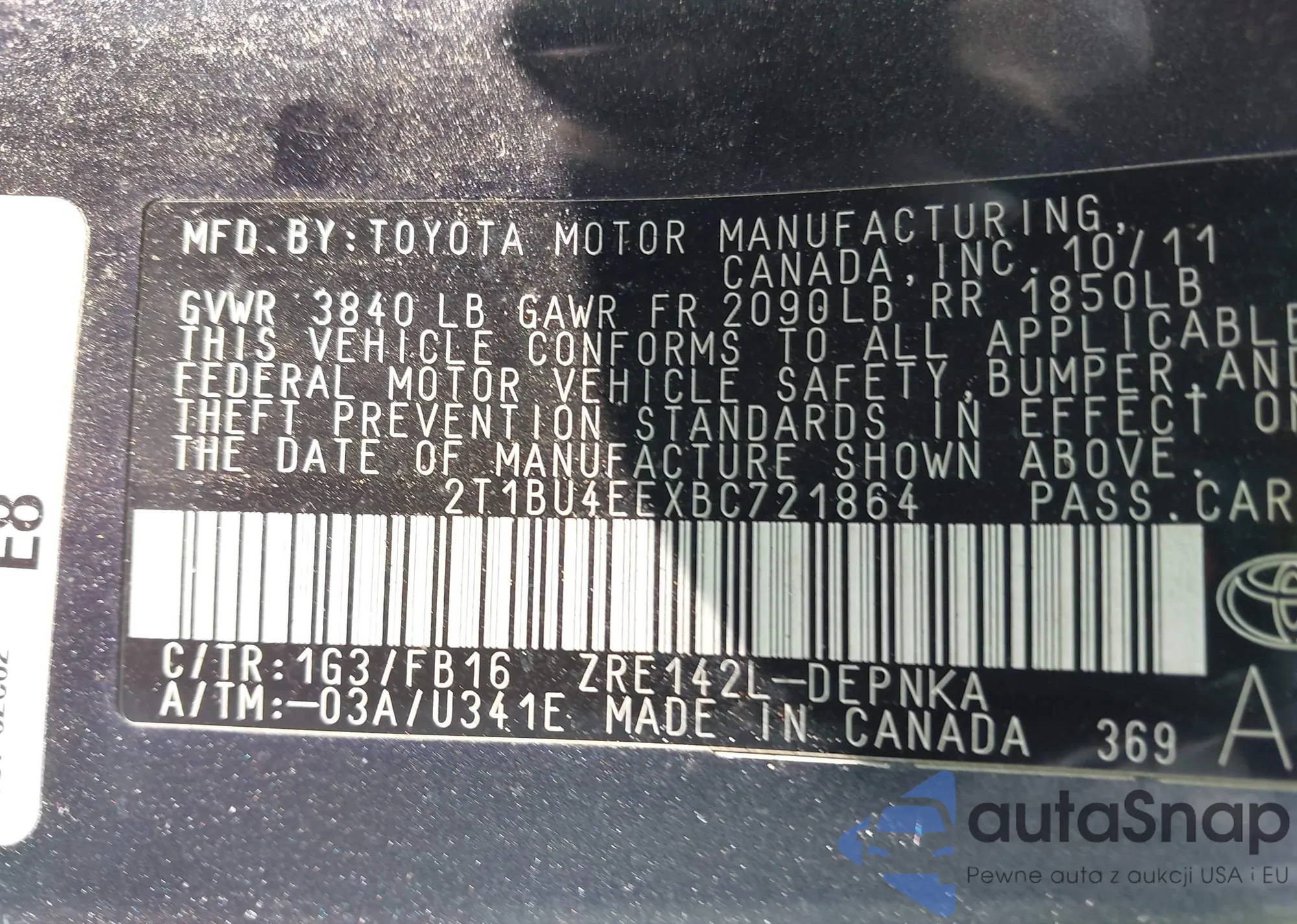 • VIN 2T1BU4EEXBC721864