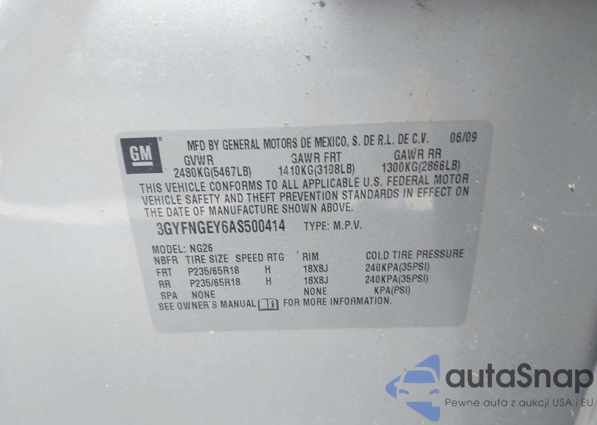 • VIN 3GYFNGEY6AS500414