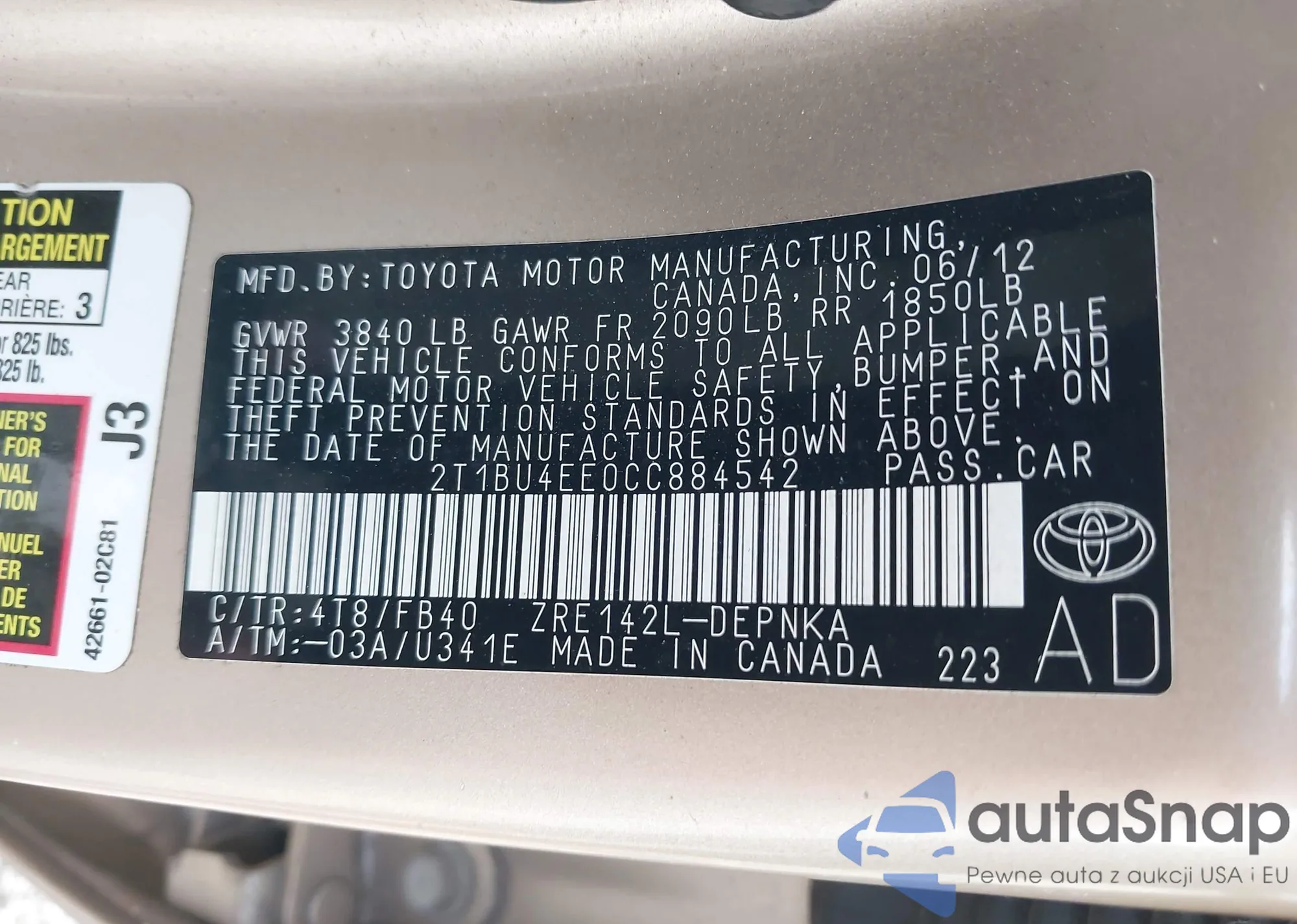 • VIN 4T4BE46K69R049446