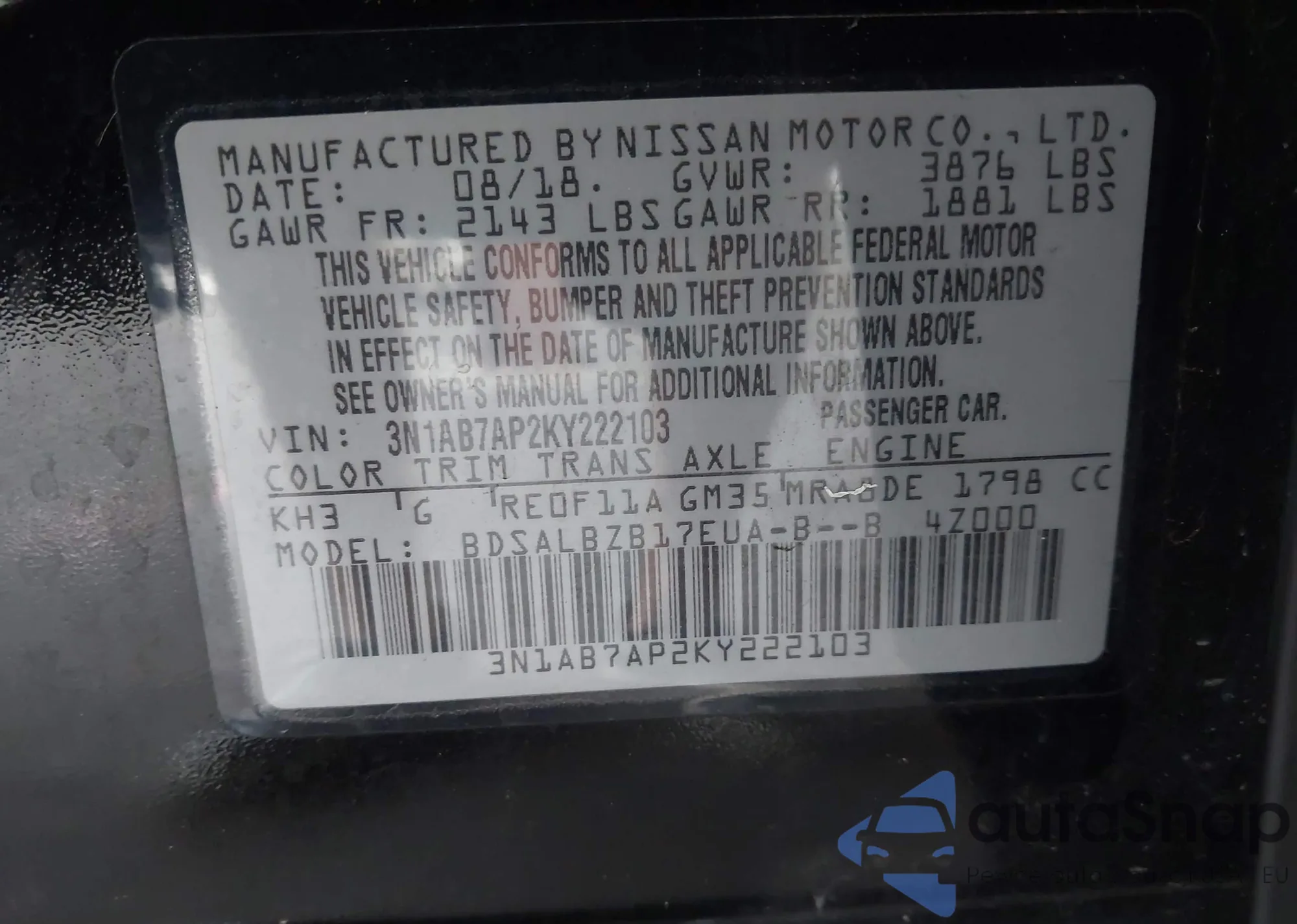 • VIN 3N1AB7AP2KY222103