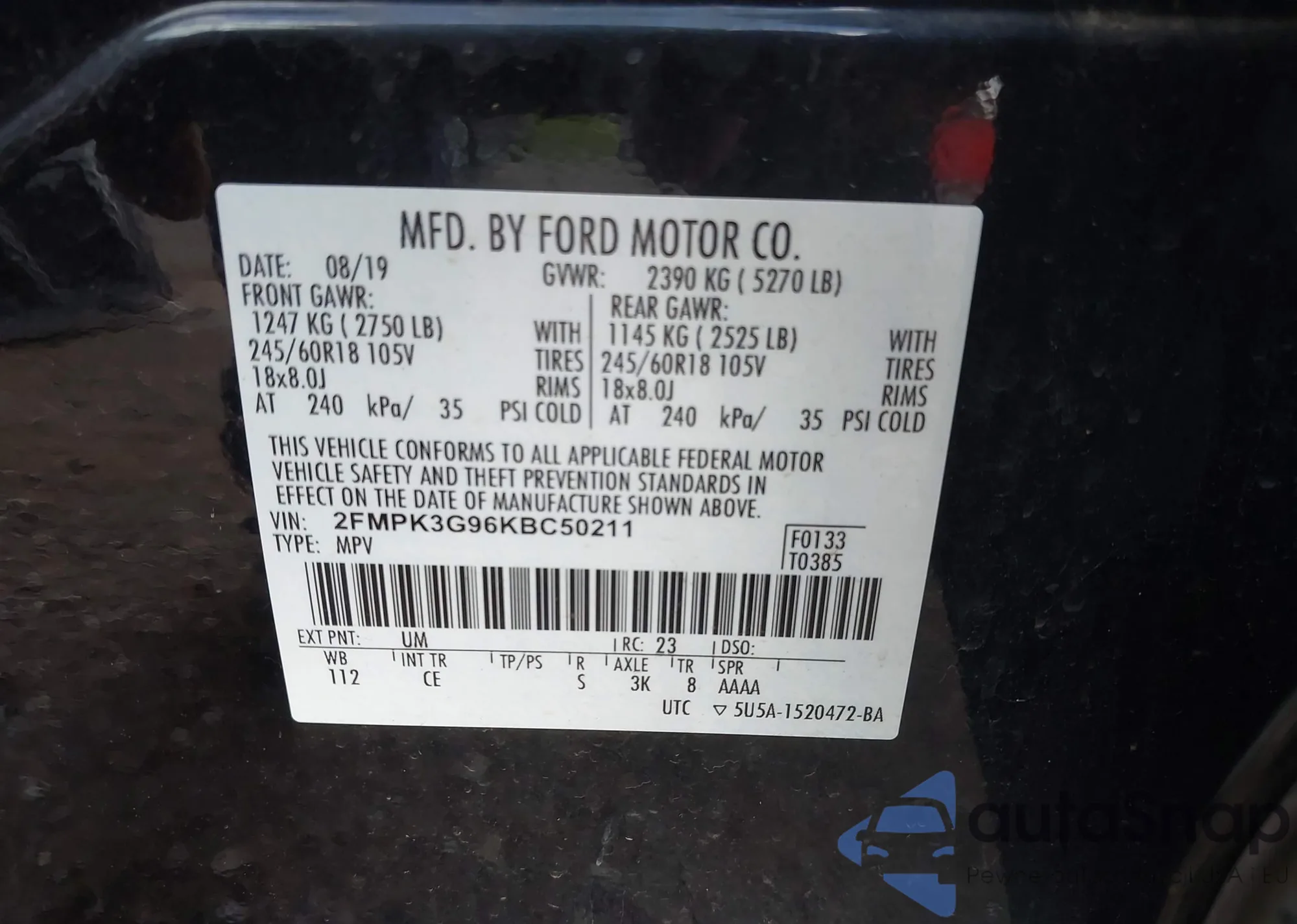 • VIN 2FMPK3G96KBC50211