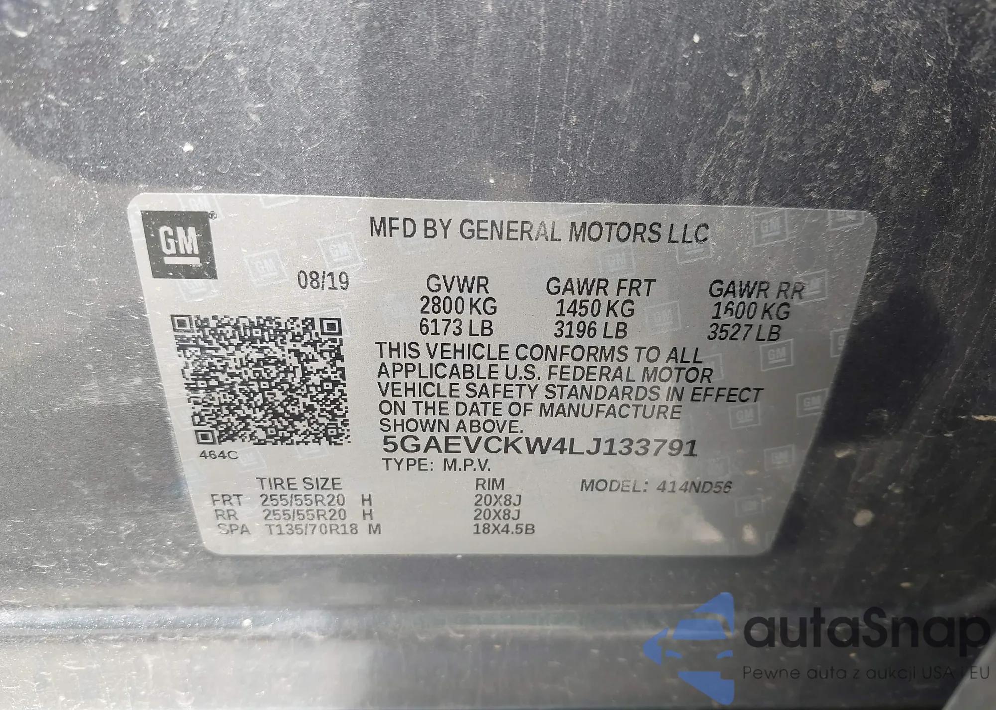 • VIN 5GAEVCKW4LJ133791
