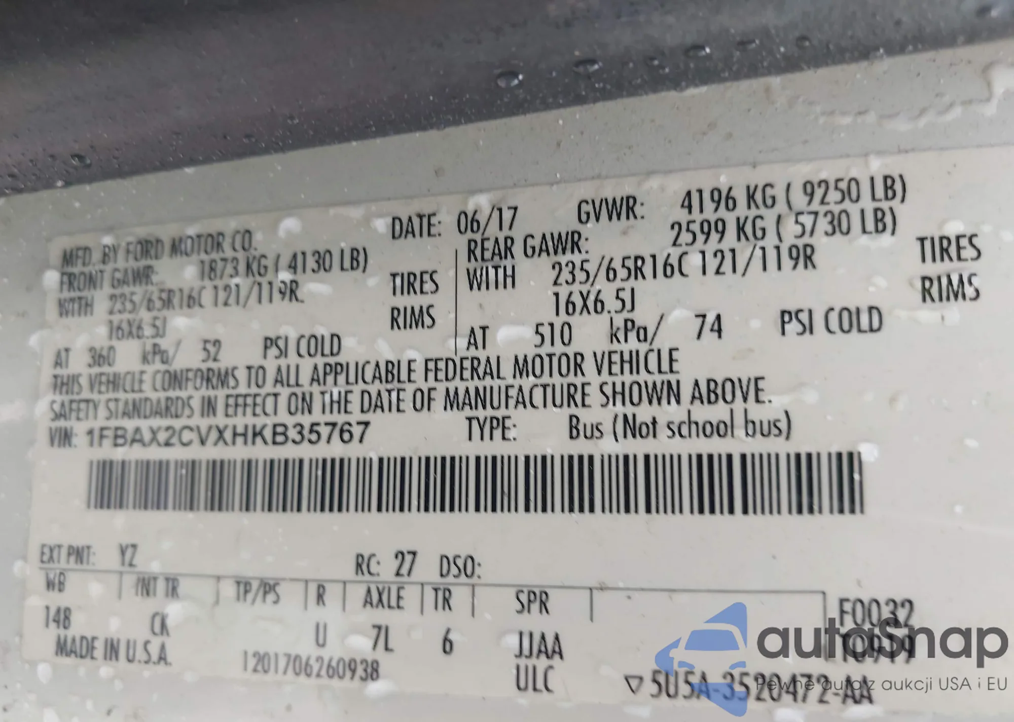 • VIN 1FBAX2CVXHKB35767