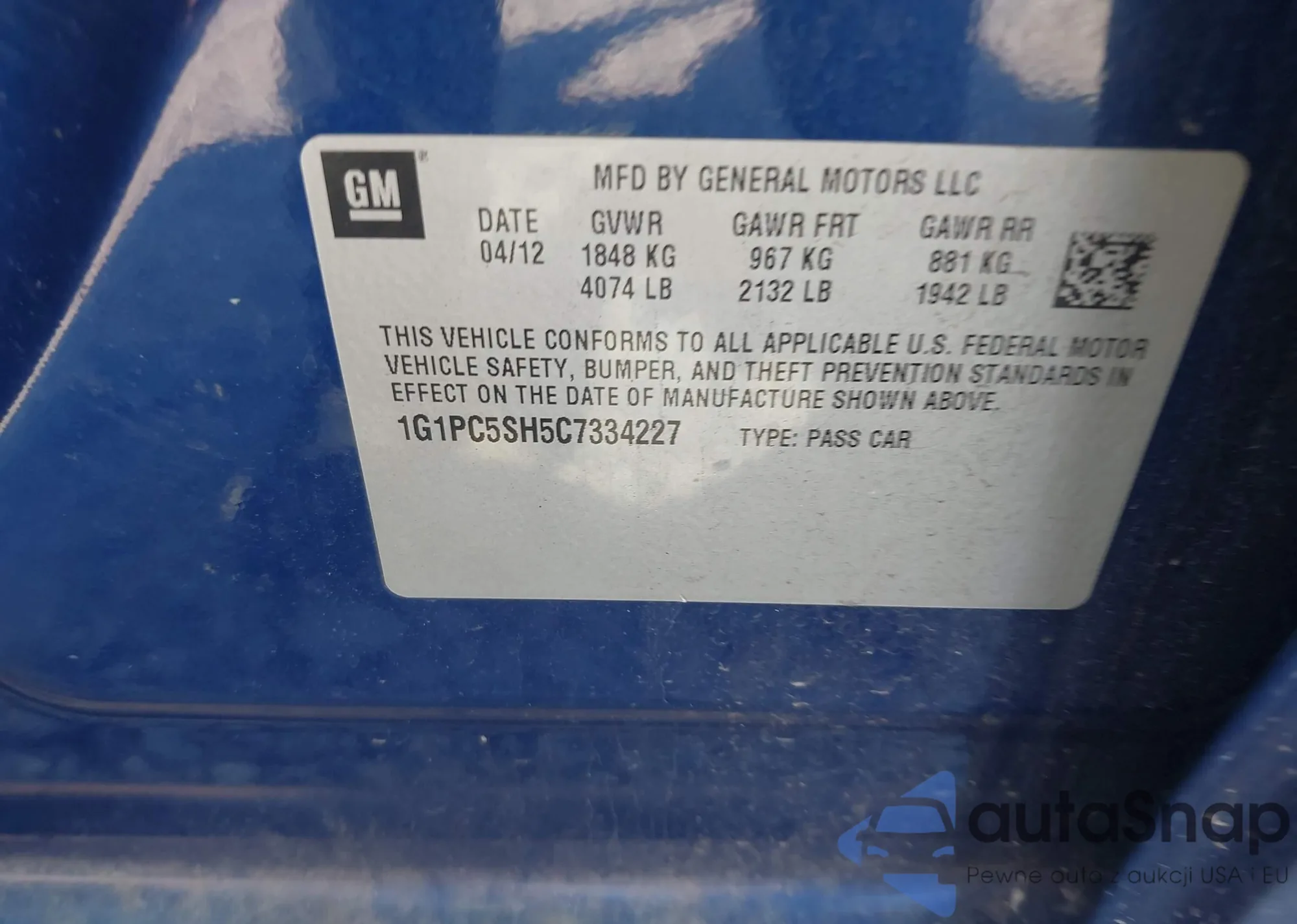 LOT: 43079506 VIN: 1G1PC5SH5C7334227