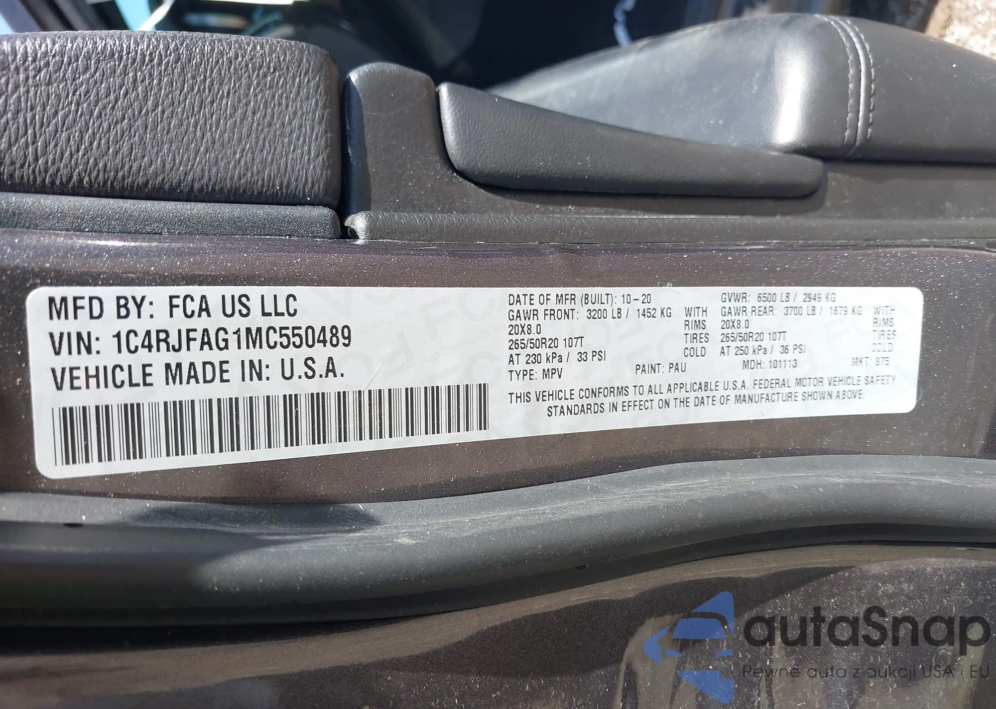 • VIN 1C4RJFAG1MC550489
