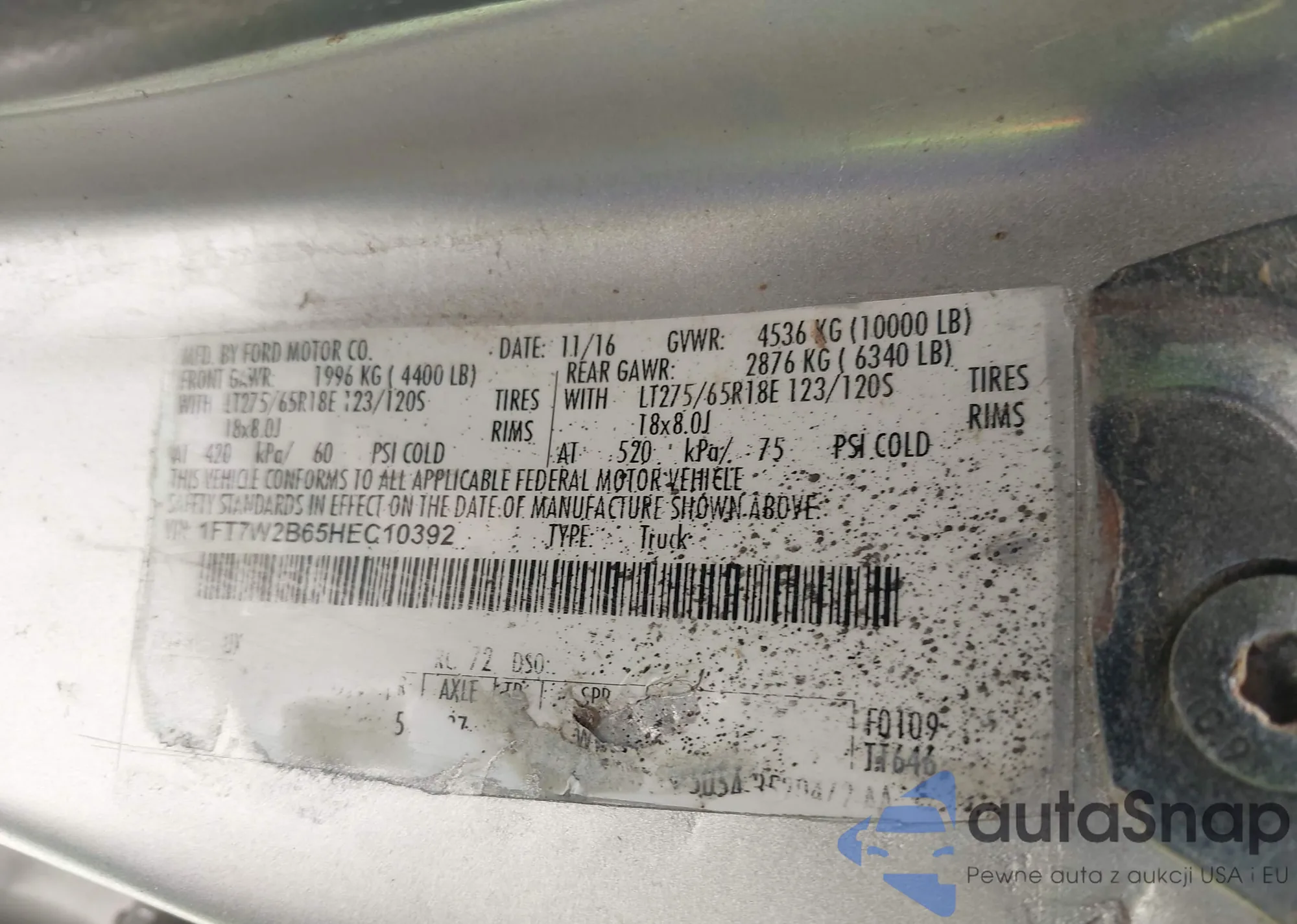 • VIN 1FT7W2B65HEC10392