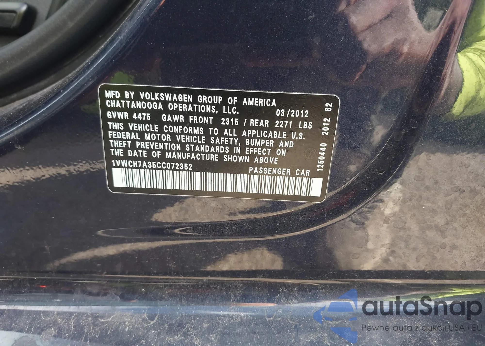 • VIN 1VWCH7A35CC072352