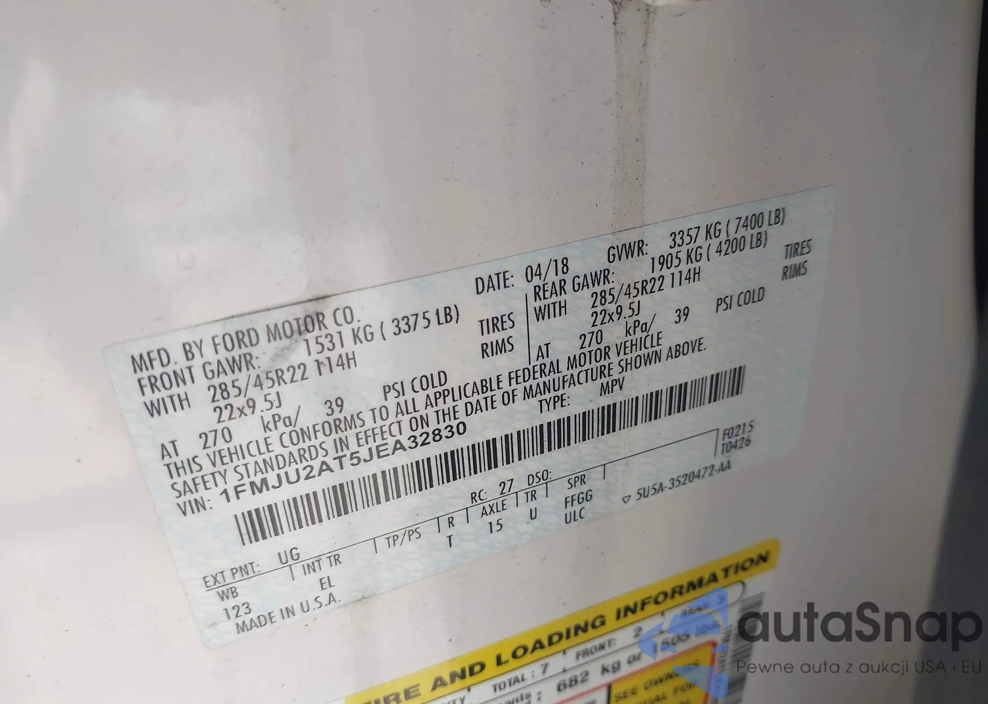 LOT: 42298671 VIN: 1FMJU2AT5JEA32830