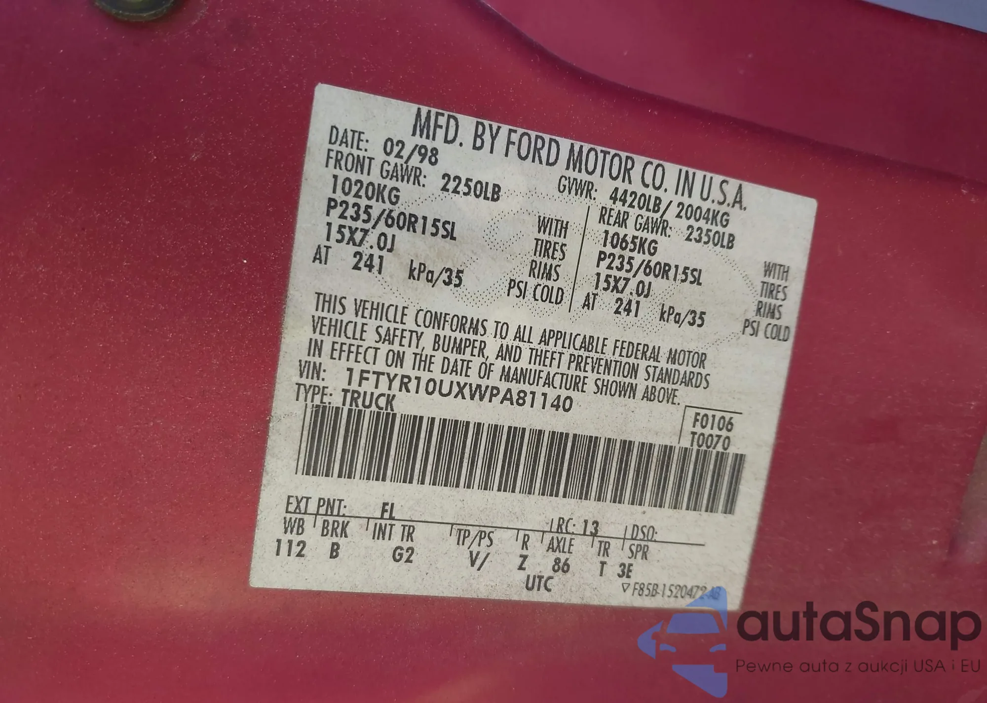• VIN 1FTYR10UXWPA81140