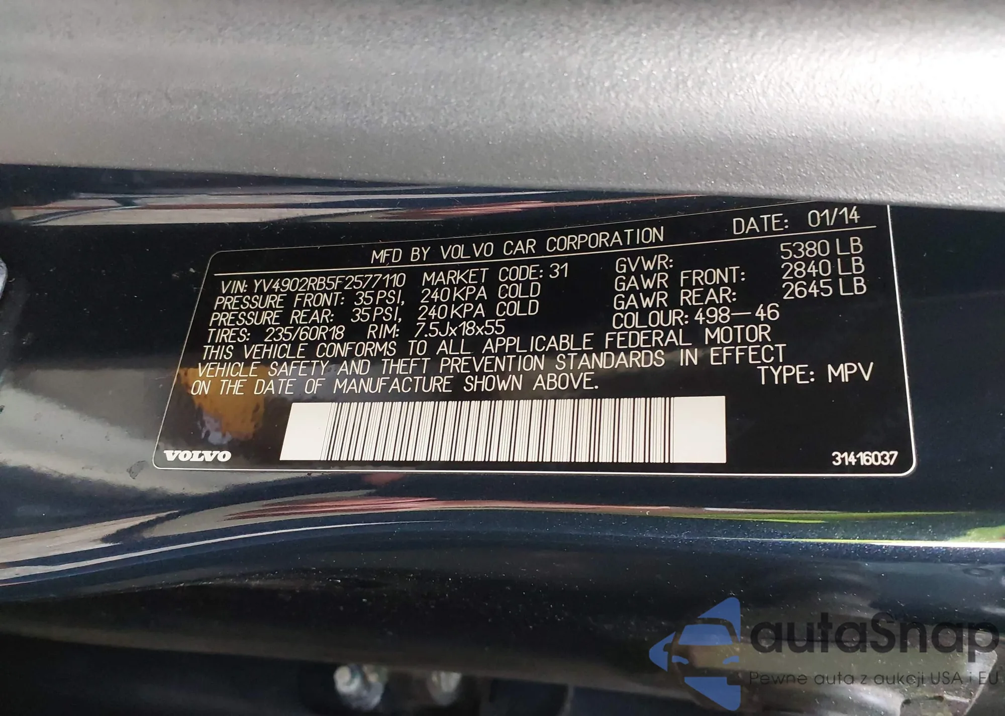 LOT: 43100645 VIN: YV4902RB5F2577110