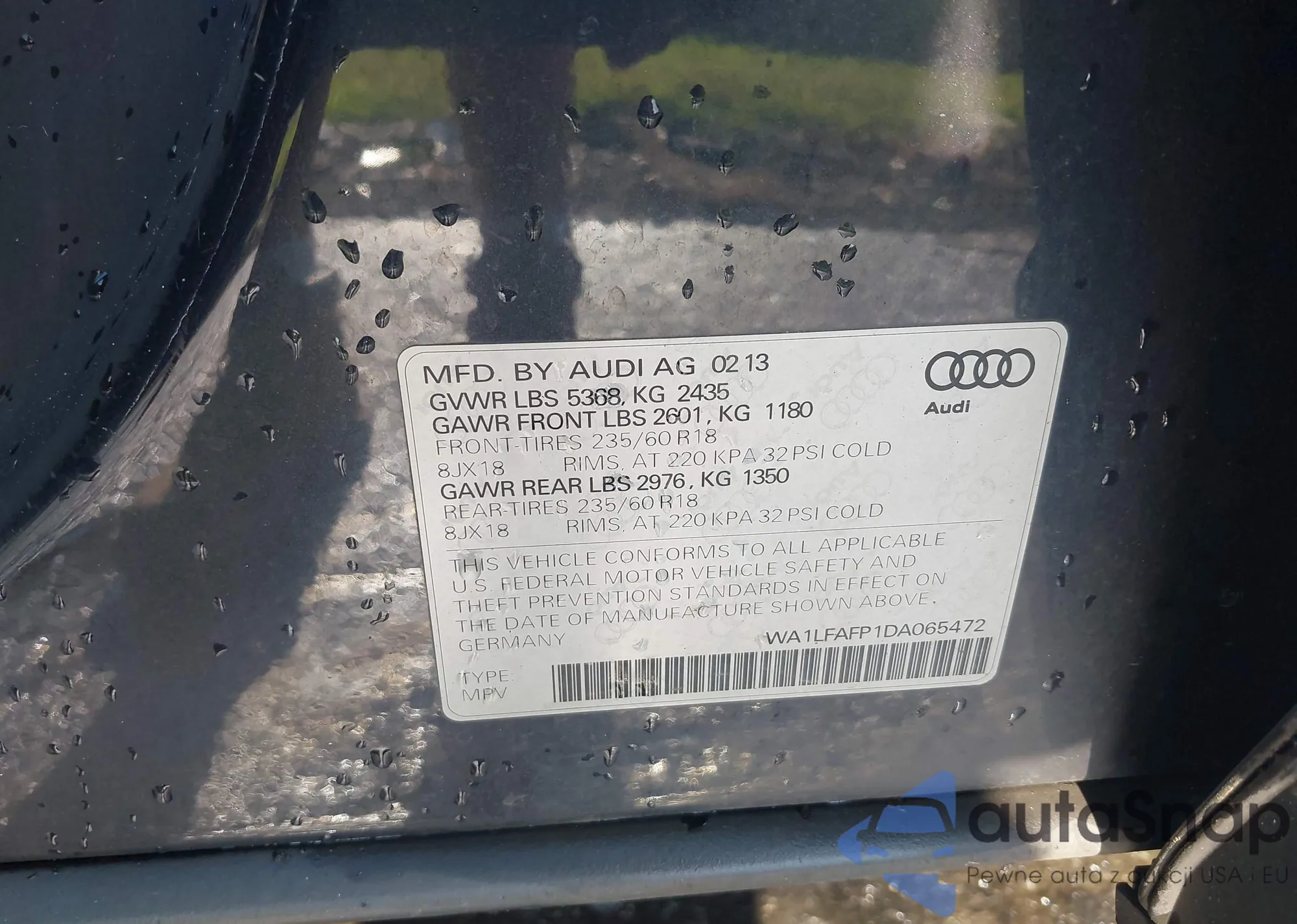 LOT: 42593171 VIN: WA1LFAFP1DA065472