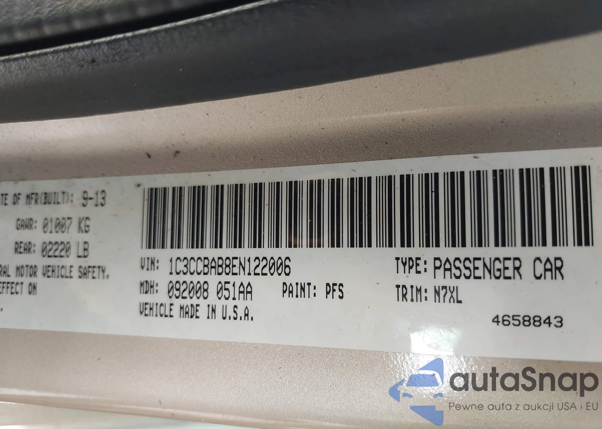 LOT: 42761344 VIN: 1C3CCBAB8EN122006