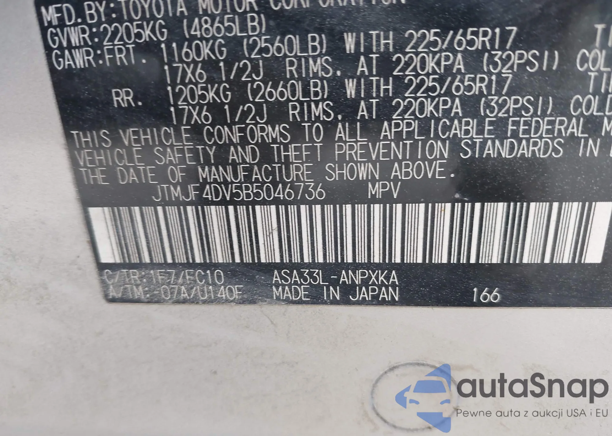 • VIN JTMJF4DV5B5046736