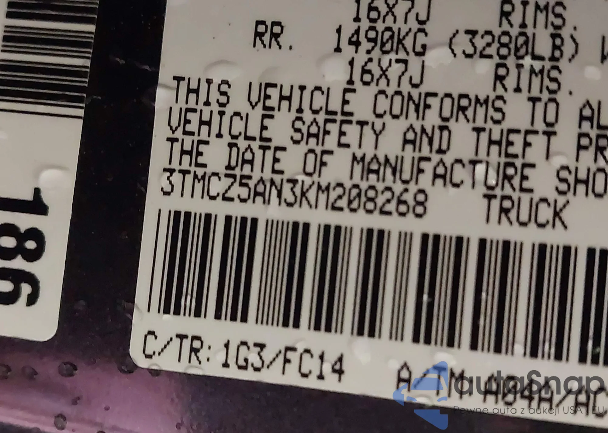 • VIN 3TMCZ5AN3KM208268