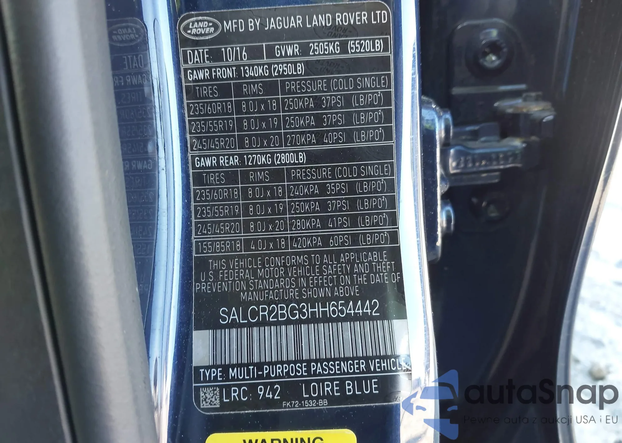 • VIN SALCR2BG3HH654442